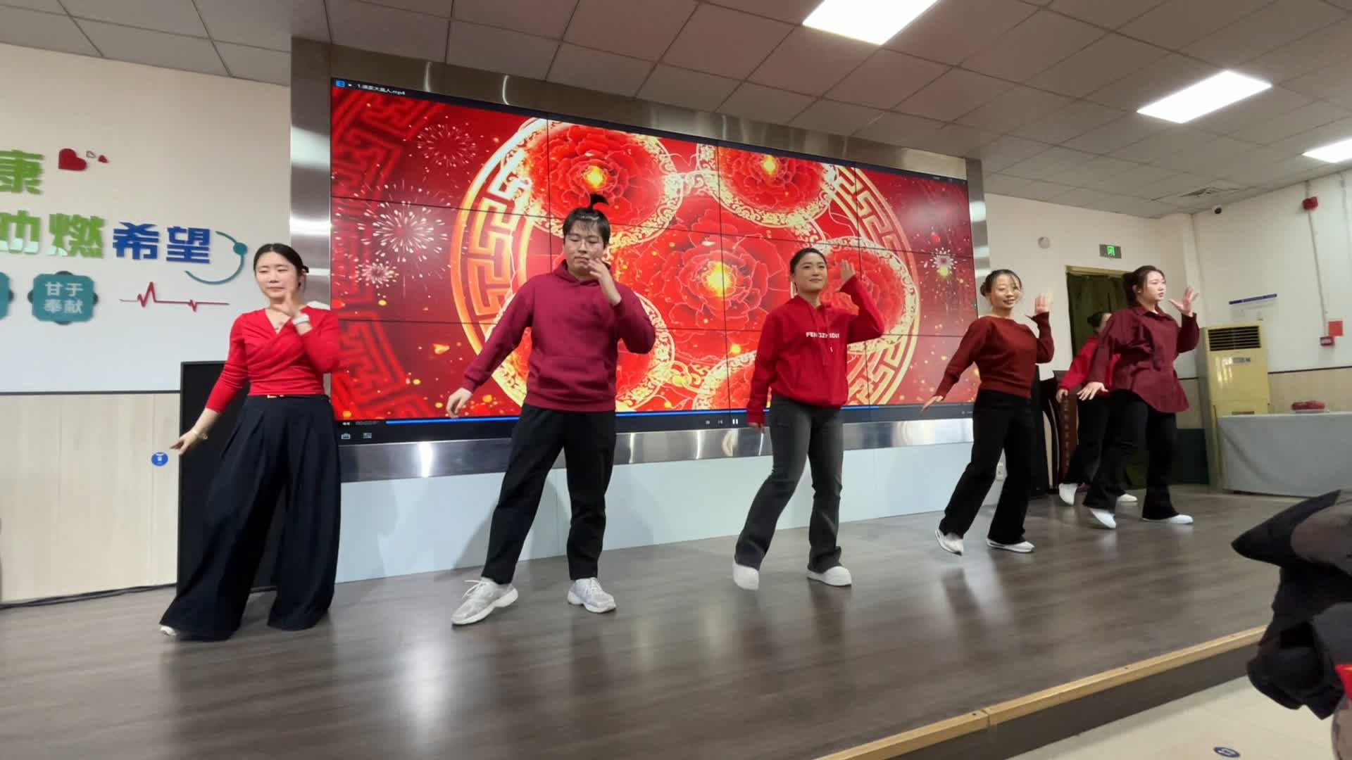 联欢会在活力四射的舞蹈《谁家大美人》中拉开序幕,医护人员身着靓丽服饰,用灵动的舞姿点燃全场热情,台下患者们纷纷鼓掌喝彩,原本略显拘谨的氛围瞬间被欢声笑语打破。随后,歌曲《我们的中国梦》奏响时代强音,演唱者饱含深情传递出对祖国繁荣、人民安康的美好祝愿;《那滋味》《最远的你是我最近的爱》等经典歌曲轮番登场,医护人员与患者代表同台演唱,歌声里既有对生活的热爱,更有医患之间的深厚情谊。