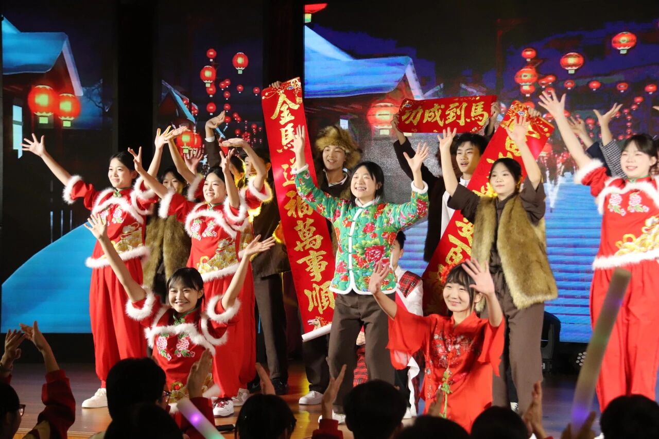 深情的独唱、优美的民族舞蹈等共同勾勒出山河壮丽、青春奋进的画卷。联欢会在全体参演师生表演的《青春共舞》中达到高潮,歌声与舞步汇聚成对新年最热烈、最美好的祝愿。