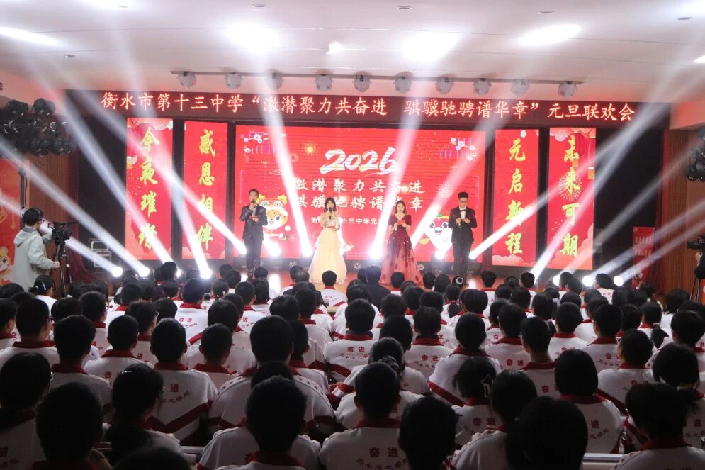 2025年12月31日,衡水十三中举行“激潜聚力共奋进 骐骥驰骋谱华章”元旦联欢会。本次联欢会分为三大篇章,层层推进,精彩纷呈。师生欢聚一堂,以艺术表达心声,以热情共赴新程,在温馨而昂扬的氛围中迎接2026年的到来。