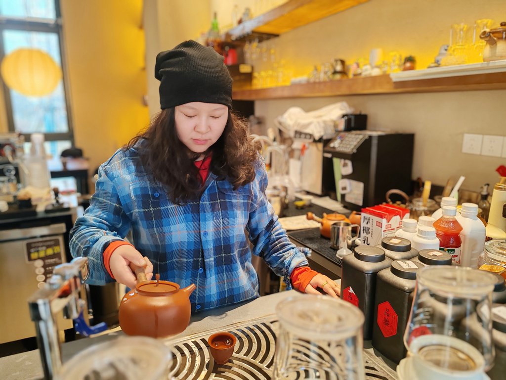 2025年12月23日,杨雷在自己创办的店铺十时安茶酒肆内忙碌。2025年8月开业以来,该店铺吸引了大量年轻人打卡。河北日报见习记者 康晓博摄