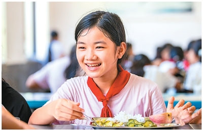 2025年9月2日,贵州省黔东南苗族侗族自治州从江县刚边壮族乡中心小学的学生在享用免费营养餐。