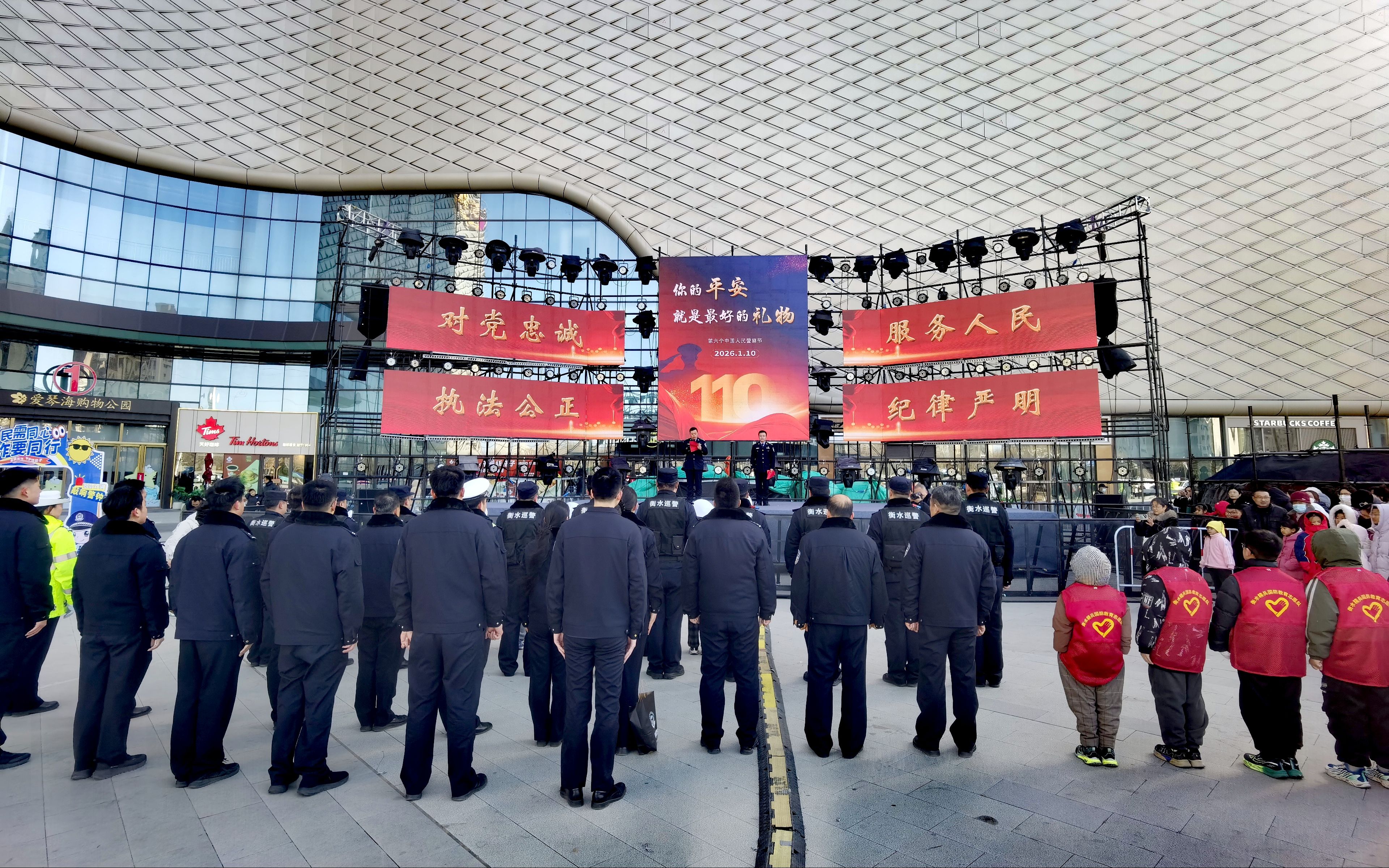 2026年1月10日是第六个中国人民警察节。当日上午,衡水市公安局在爱琴海购物广场举办“你的平安·就是最好的节日礼物”主题警营开放日活动,设置宣传区、装备展示区、战术演练区等五大特色展区,吸引大批市民参观,现场气氛热烈。