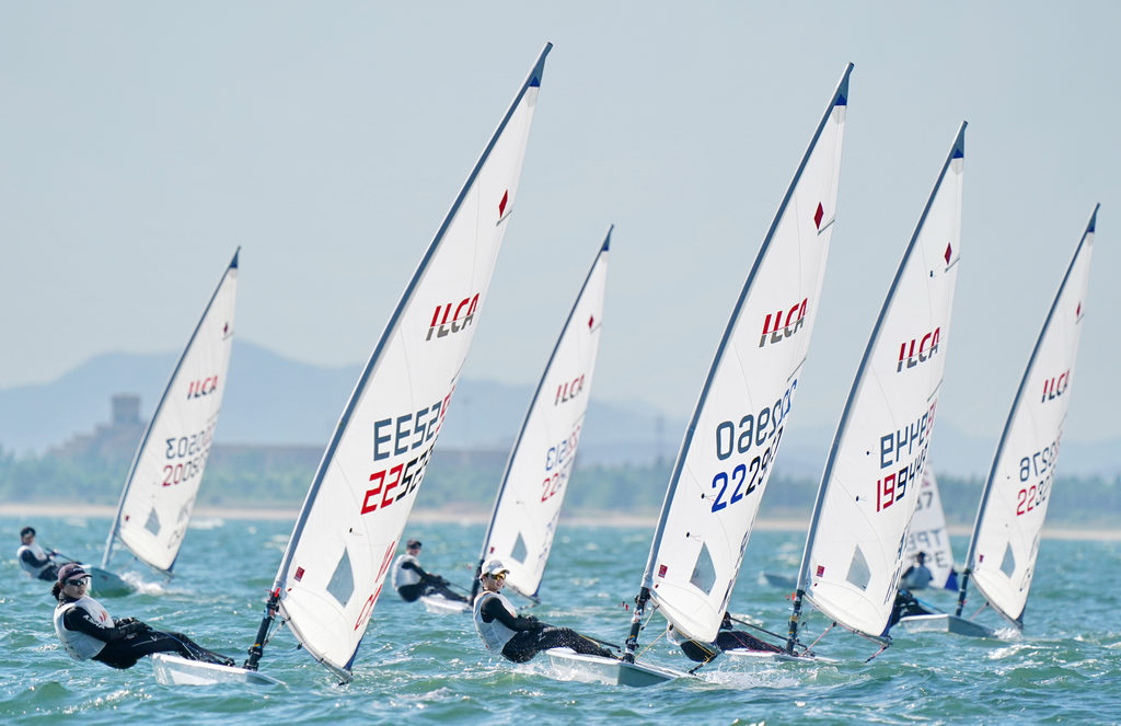 2025年6月4日,2025年ILCA亚洲(公开)帆船锦标赛在秦皇岛市开赛,图为选手们在比赛中。(资料片)新华社发(李 铎摄)