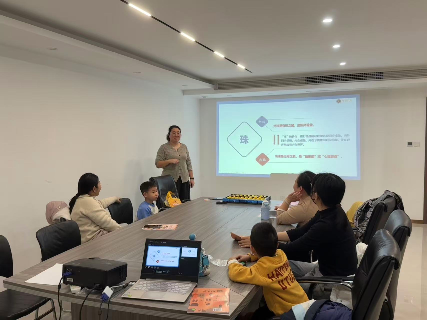 活动以“文化讲解+手工实践”的形式,让社区居民沉浸式体验非遗文化的独特魅力。现场,社区特邀的专业珠算老师以生动的历史典故为切入点,深入浅出地为到场的家长与孩子们讲解珠算的起源、发展历程及其在现代社会的传承意义。