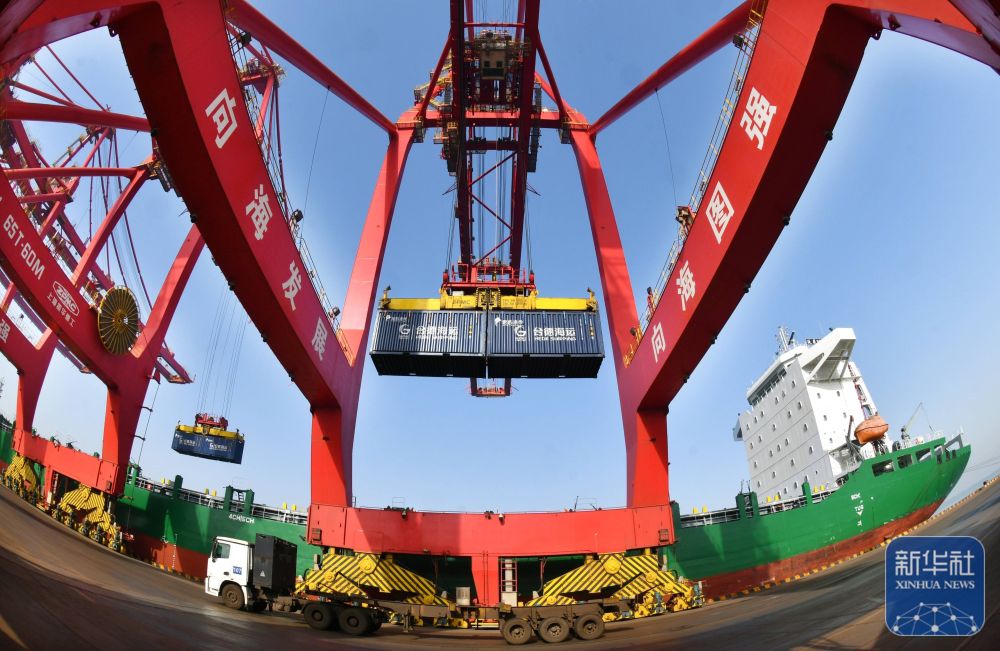 ↑ 1月15日,一艘货轮靠泊在黄骅港综合港区集装箱码头。