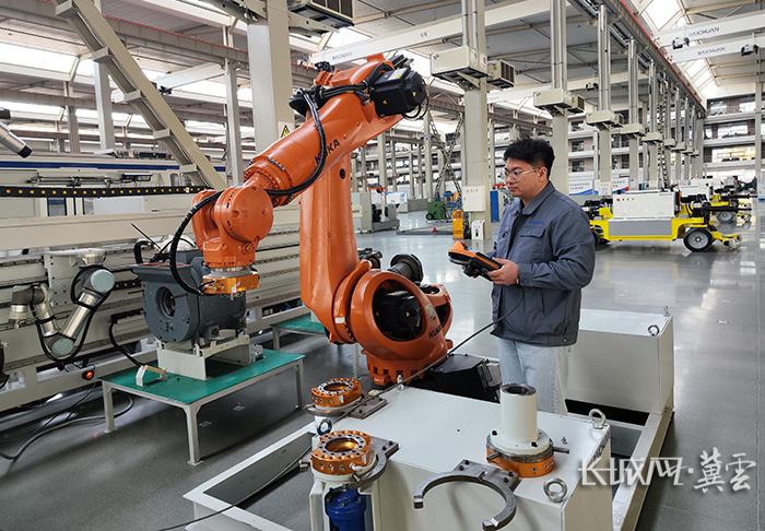唐山百川机器人共享制造工厂,技术人员正在调试设备。李冠橦 摄