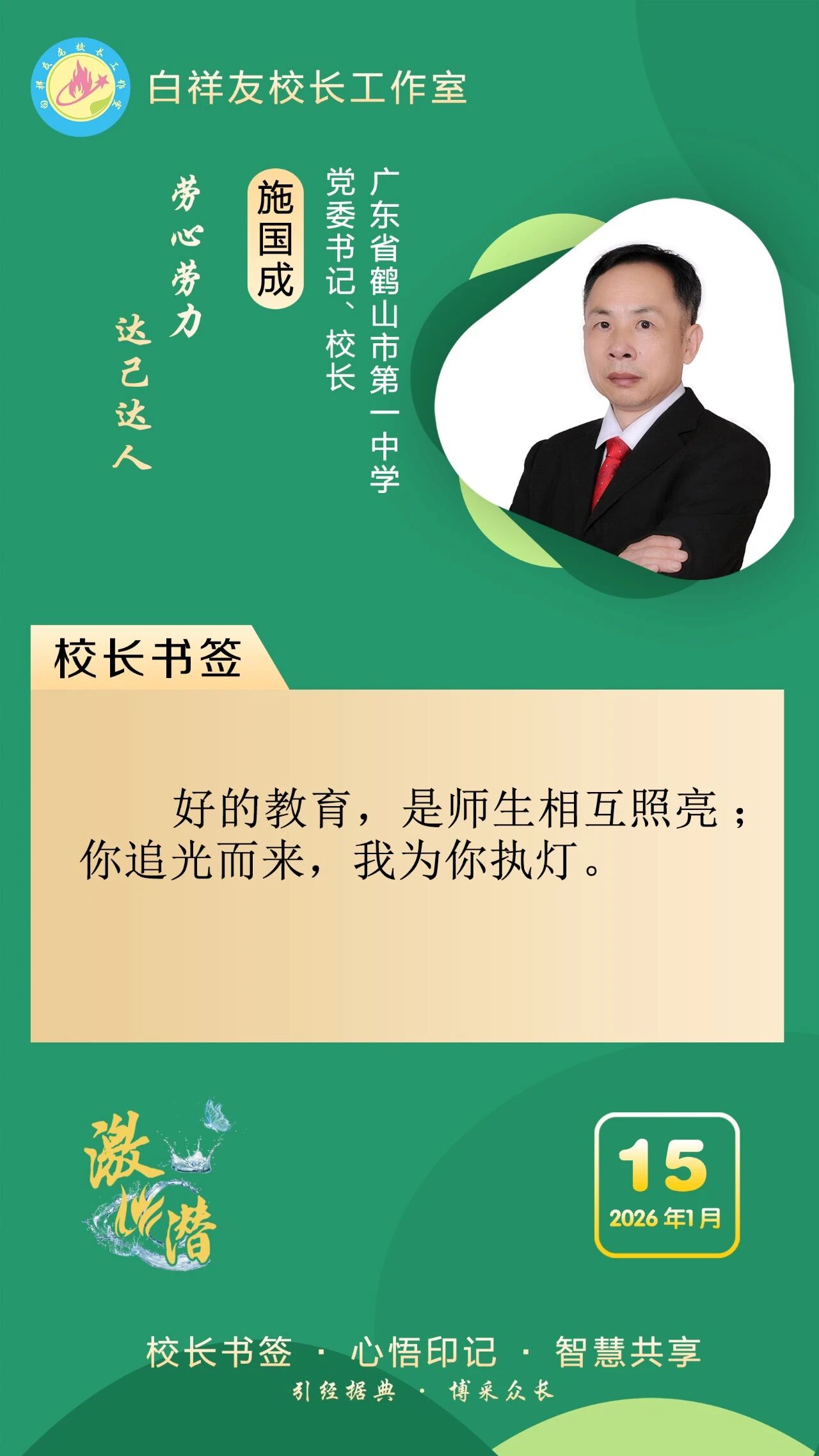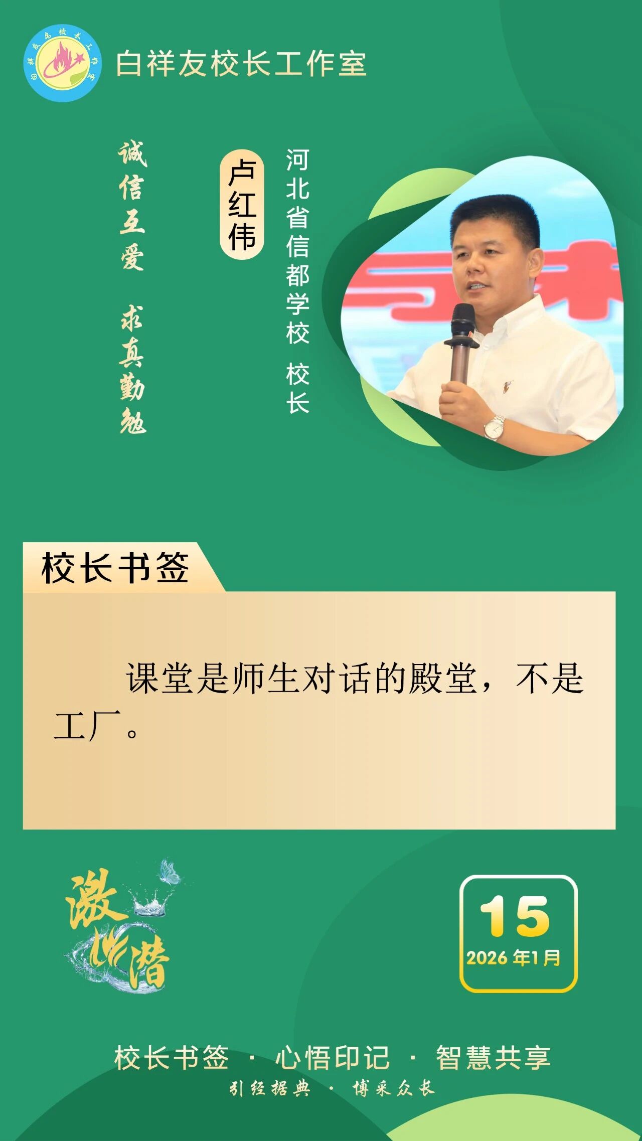“白祥友校长工作室”成立于2019年4月,是教育部“国培计划”中小学名校长领航工程、河北省首批名校长工作室,目前省内外成员校59所。工作室坚持“资源共享、智慧共融、互助共赢”理念,已成为思想碰撞的交流场,资源共享的品牌站,成果展示的辐射源。 点赞 +1 微博 微信 我要评论 发布 相关推荐 衡水市名校长大讲堂在衡水十三中举办 教育部中小学校长培训办公室于维涛主任作专场报告 教育大观 01-19 白祥友校长工作室成员带队参观衡水十三中 教育大观 2024-05-22 “白祥友校长工作室”成员校石家庄十五中百余教师来衡水十三中参观 教育大观 2024-04-01 热门 一天 三天 一周 1 春节期间衡水推出近200项文旅活动 2 戏曲搭台传古韵 服务下乡暖民心 衡水市景县举办“戏曲过大年”文化惠民活动 3 暖冬助困迎新春 衡水志愿者帮扶孤儿家庭 4 衡水市老年摄影协会举办“光影凝冬韵 乐龄颂新春”手机摄影讲座 5 网上购买新的空气炸锅疑似是“翻新” 衡水赵女士盼获合理解决方案 6 衡水阜城县建桥乡建阳村:冬闲“充电”正当时 农家书屋传“书香” 7 衡水武邑县武罗社区:表彰先进暖人心 邻里同心庆新春 8 冰雪春天|踏雪问暖 9 景县开展“迎春纳福写春联”系列活动 10 习言道|中俄、中美两场元首外交同一天举行,很不寻常! 1 桃城区迎新春少儿壁画展吸引众多市民参观 2 武邑县康泰社区:返乡大学生传爱心暖“夕阳”靓社区 3 衡水市桃城区:“你点我检+你送我检”守护节日食品安全 4 衡水市开展食品生产安全风险隐患排查整治专项行动 5 衡水市冀州区获评“国家慢性病综合防控示范区” 6 夯基稳行谋发展 锚定目标勇攻坚 —以岭德衡中西医结合医院2026年职工大会圆满召开 7 【新春走基层】非遗“老手艺”遇上“新匠人” ——武强姐弟年画雕刻直播“出圈”记 8 奋进的河北•数读新变化② | 付敏杰:稳投资,夯实经济发展“硬支撑” 9 衡水移动:织密通信“保障网” 守护万家“团圆年” 10 第一观察|着眼“十五五”,习近平总书记引领“三农”工作新开局 1 衡水湖举办世界湿地日宣传活动 传递生态守护理念 2 衡水武强:“小小蓝莓”结硕果 特色农业助农富 3 【回眸2025】潮涌湖城满目新——衡水2025年全面深化改革工作综述 4 特稿|同心七十载 聚力新未来——中非携手共逐发展振兴梦 5 衡水市武邑县开展“机械强农”行动破解农业生产难题 6 衡水武强:赶订单忙生产 金音乐器奏响新春“奋进曲” 7 振翅向自由! “衡湖福雁”重归衡水湖 8 春运启幕 衡水车务段全力守护旅客平安顺畅出行 9 马年春节临近 衡水市区年宵花热销 10 河北衡水:民俗画《丰收乐》再现农耕记忆 广告 广告 广告 24小时 1 “河北五超”衡水赛区第二十六轮完赛 2 白祥友名校长工作室 | 激潜教育探索随笔(第757期) 3 白祥友名校长工作室 | 激潜教育探索随笔(第758期) 4 学习新语|焦裕禄精神一直是一盏明灯 5 看图学习·冰雪春天丨“人生能有几回搏” 总书记勉励冰雪健儿 6 海报系列||早安衡水 7 因地制宜 传统产业“焕新记” “众筹科研”+“共享智造” 再破“卡脖子”难题 8 因地制宜 传统产业“焕新记” 抱团突围 解锁新质生产力的“本土密码” 9 因地制宜 传统产业“焕新记”“一根丝”撑起千亿产业 10 冰雪春天|踏雪问暖