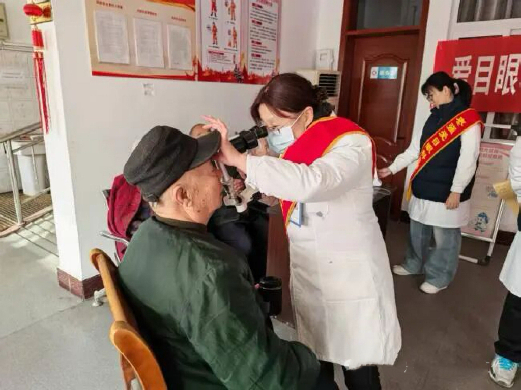 健康关怀环节,爱目眼科医院医护团队为老人提供免费眼部及口腔检查,监测血压、血糖。80岁的李奶奶在检查完眼睛后,握着医生的手连声道谢:“年纪大了,去医院不方便,你们能来真是太好了!”医护人员不仅带来了专业检查设备,还准备了图文并茂的健康手册,让健康知识一目了然。