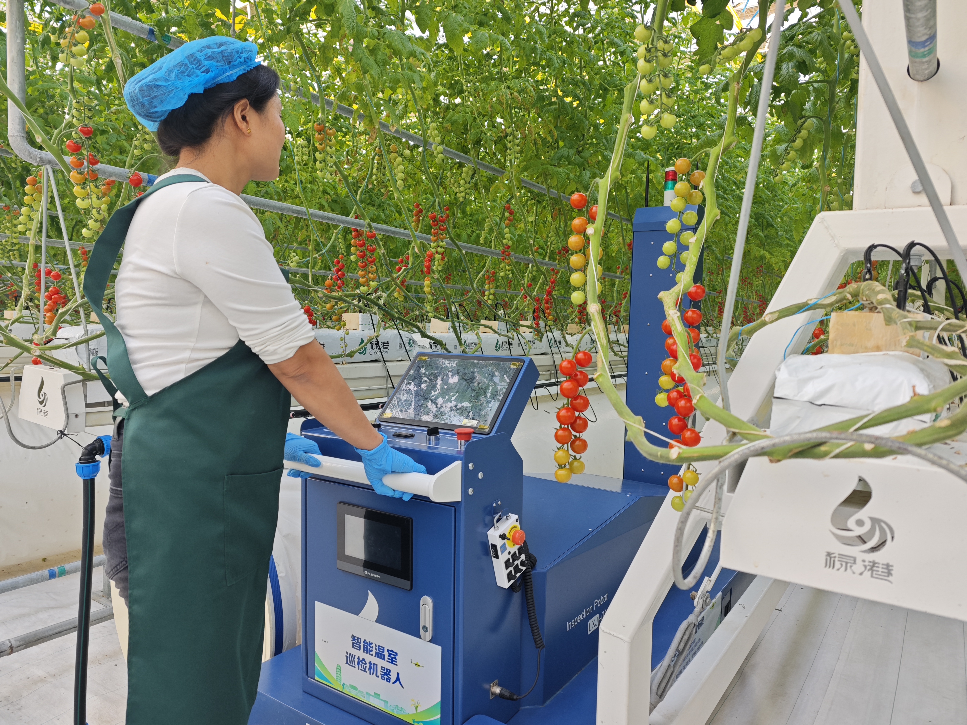 雄安智慧农业科技园2024年正式运营,总占地面积1180亩,是一个集科研、育种、高效农业、现代农业管理培训于一体的数字核心产业园。科技园一期共建设有24.8万平方米种植玻璃温室和3.2万平方米育苗玻璃温室,总投资6.4亿元,以种植优质串番茄为主。目前,科技园一期已全面投产。说话间,一个长方形的机器人正在温室里穿梭巡检。“这是在首届雄安未来之城场景汇植物工厂应用大赛中获得三等奖的智能巡检机器人,我们将它应用到了农业生产中。只要设定好巡检时间和巡检区域,它就能自主完成巡检作业。”张立民介绍,机器人通过AI视觉系统可识别出不同成熟度果实的数量,并将结果上传至云平台,为研究人员提供数据支撑。