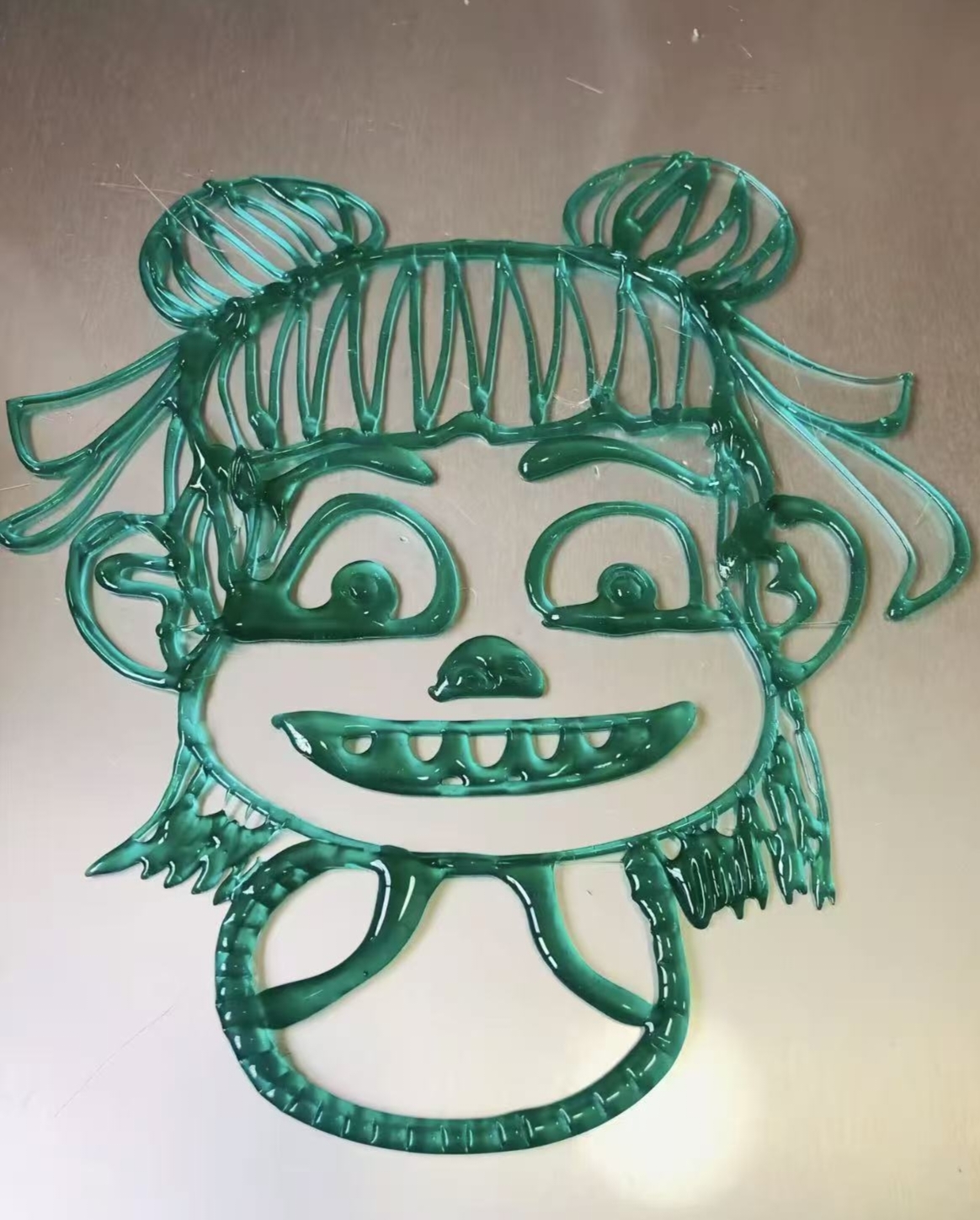 回到衡水后,吴延岭带着糖画手艺摆摊营生,却从未停止精进的脚步。2019年,得知饶阳老艺人高师傅源自四代糖画世家,技艺底蕴深厚,他立刻登门求教,在高师傅的指导下拓展了花鸟鱼虫等创作品类,技艺愈发全面。在一次非遗活动中,一个小朋友提出的“哪吒造型”需求,让他陷入深思。恰逢《哪吒之魔童闹海2》热映,这一顶流国漫IP的高人气,让他看到了传统技艺创新的可能。为精准还原哪吒形象,他将哪吒画片贴在窗前反复揣摩,把脸部表情、发型轮廓烂熟于心,再通过无数次运腕、控流练习,在铝板上打磨每一笔线条,最终让传统糖画的灵动与国漫IP的鲜活完美相融。