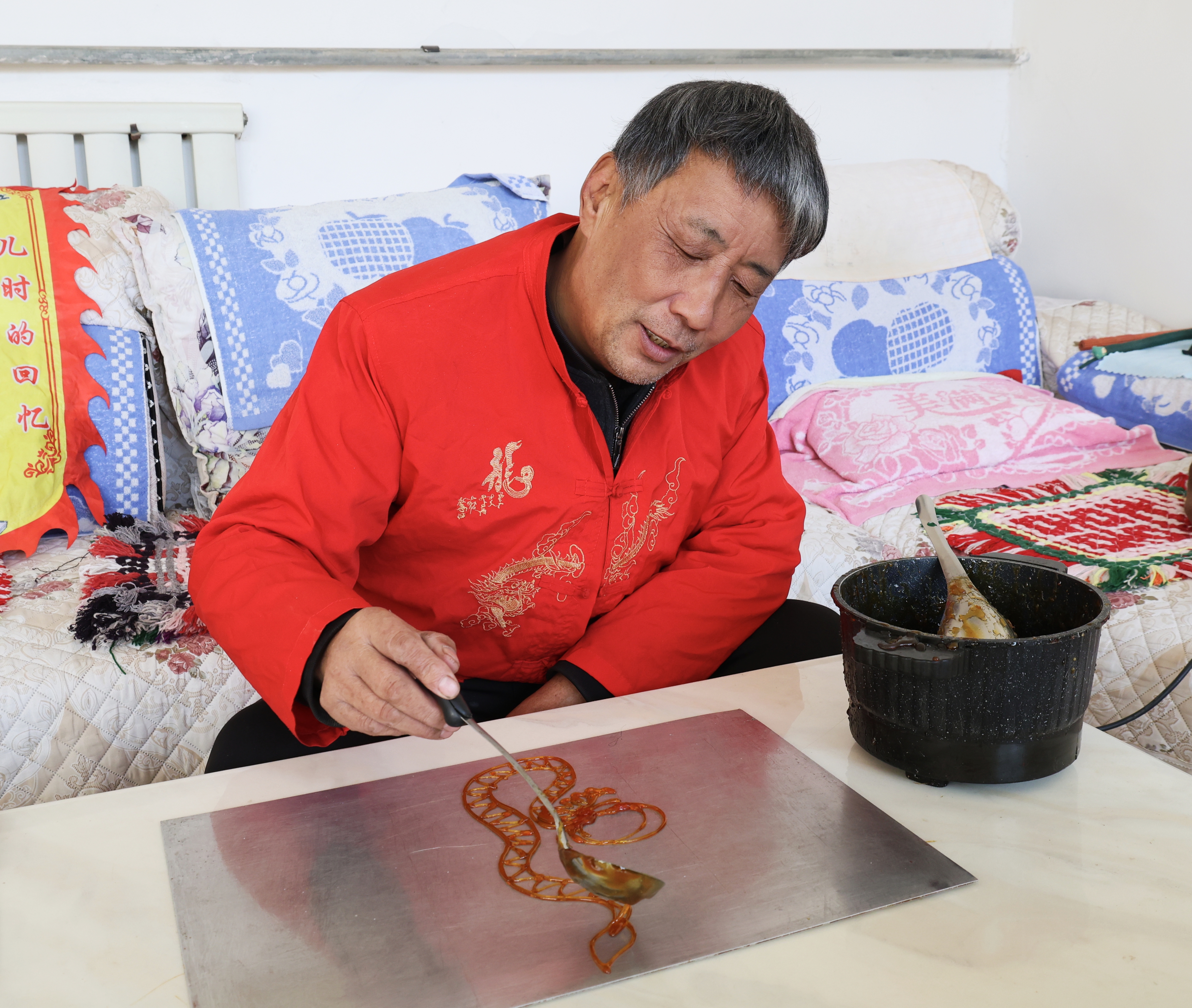 1月20日,在衡水市冀州区冀州镇石家庄村,非遗传承人吴延岭执勺作笔,糖稀为墨,腕转勺移间,方寸铝板上神龙摆尾、哪吒现身。千年糖画技艺在他数十年坚守与创新中焕彩,成为衡水非遗传承的生动缩影。
