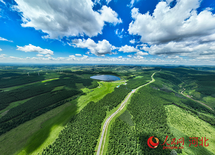 航拍塞罕坝林场与云海。人民网记者 李兆民摄