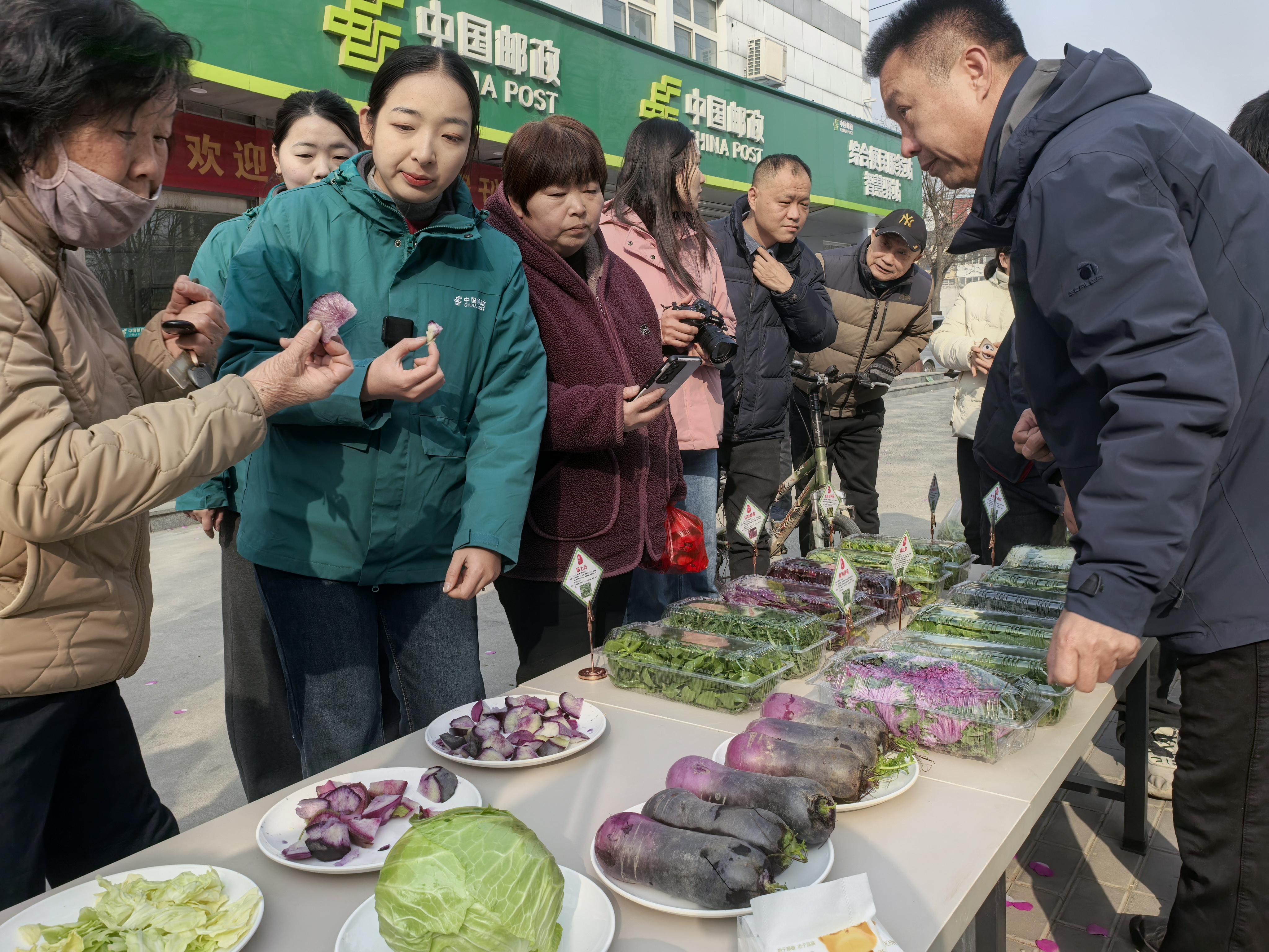 “这是什么菜?没见过。”在赛元河北生物技术有限公司的展位前,各种蔬菜应有尽有,市民们围着桌子好奇地询问。“这是紫背天葵,也叫补血菜,是广西农科院在咱这南菜北种的新品种,一会儿涮火锅给大家尝尝。”企业负责人李忠敏耐心讲解着。红叶甜菜、食用薄荷、水果甘蓝、田七叶等特色功能菜吸引了不少目光。