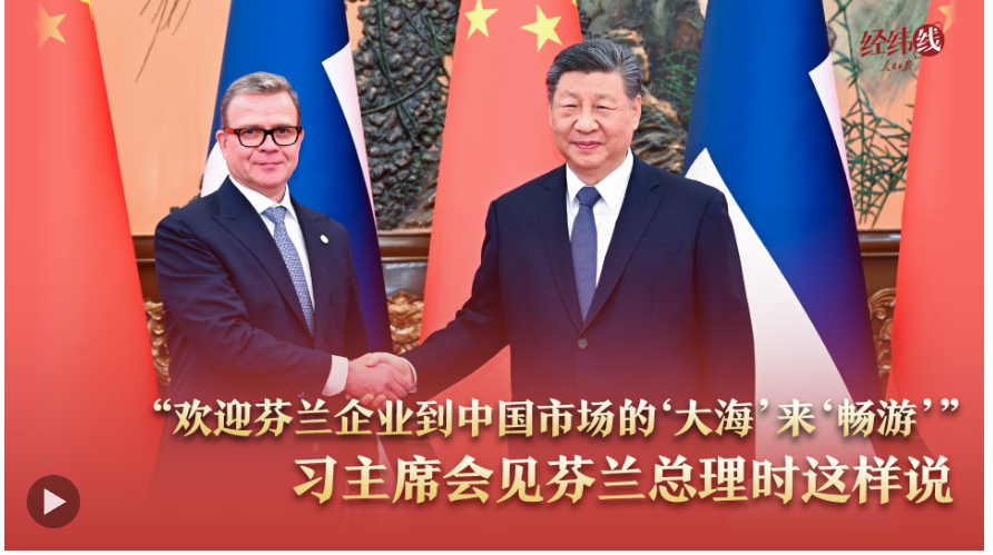 “欢迎芬兰企业到中国市场的‘大海’来‘畅游’,提升全球竞争力。”1月27日,习近平主席会见芬兰总理奥尔波时强调。展望未来,中方愿同芬方增进互信、加强交流、深化合作,助力各自国家发展,为两国人民带来更多福祉。