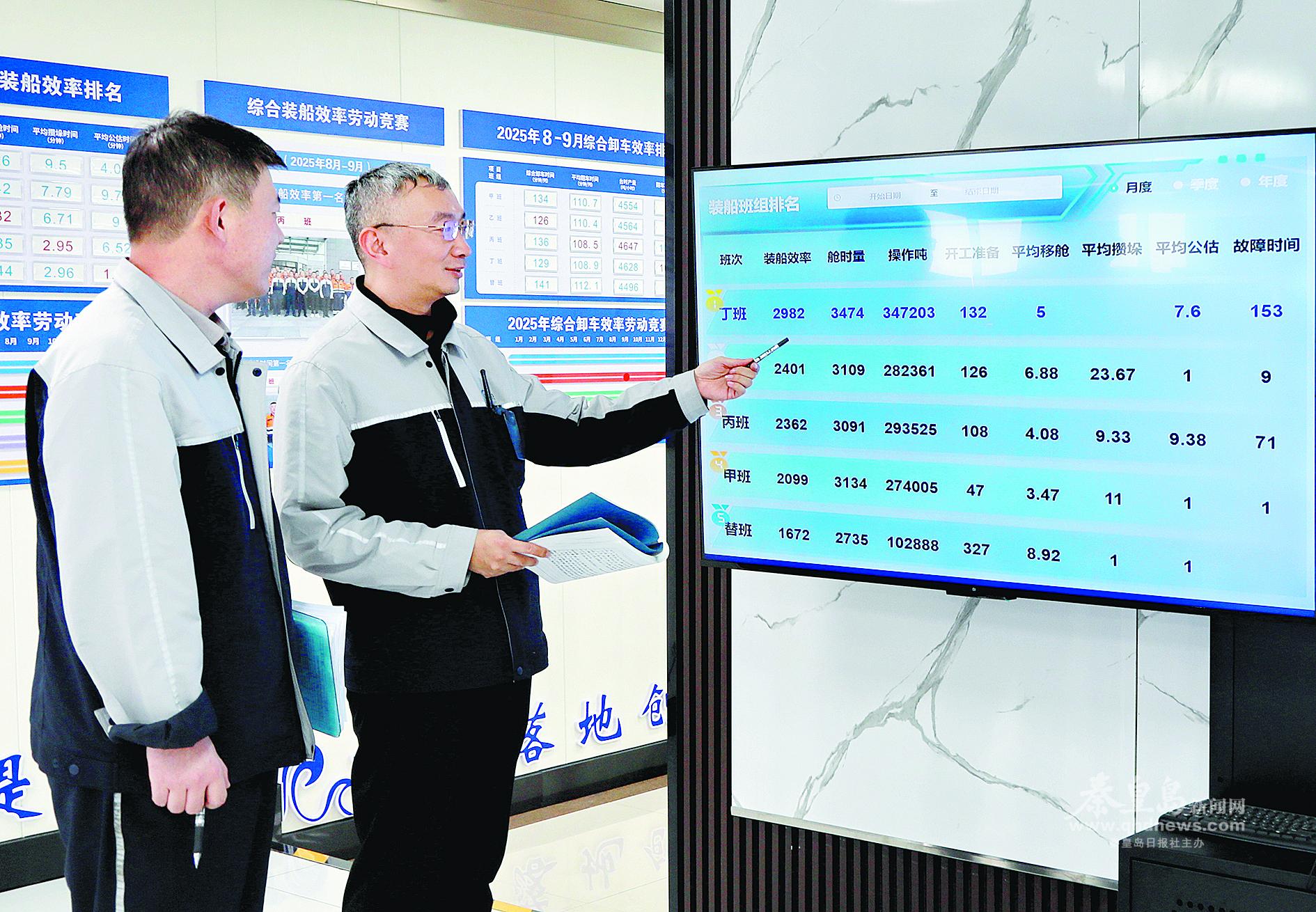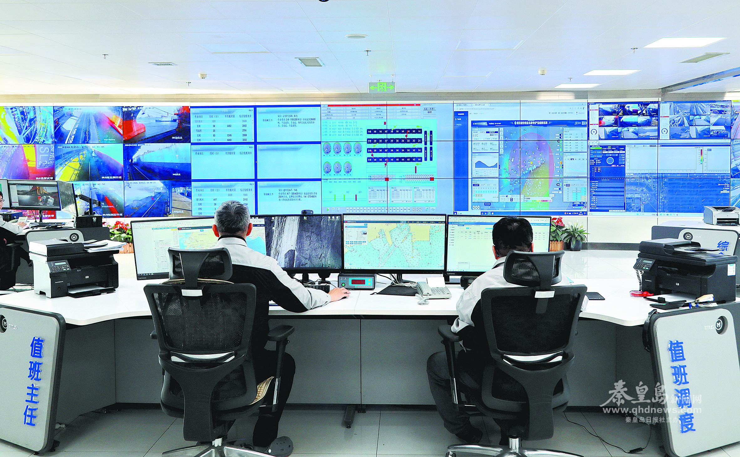 秦皇岛港工作人员实时监控生产数据,保障电煤装卸高效运行。