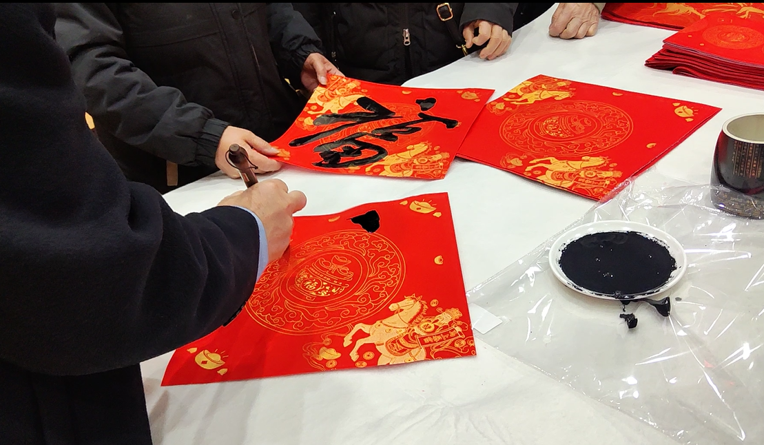 送“福”活动现场,书法名家们铺展红纸、饱蘸浓墨,挥毫泼墨间,一副副寓意吉祥的春联、一个个饱含祝福的“福”字跃然纸上。大家手持刚写好的春联,脸上洋溢着幸福的笑容,纷纷表示“手写的春联才有年味儿,这福气必须带回家”。活动现场,墨香与酒香交织,文联嘉宾现场助阵,不仅让参与群众收获了满满的新春祝福,更通过镜头将这份温暖传递给更多网友,让“福”气走进千家万户。