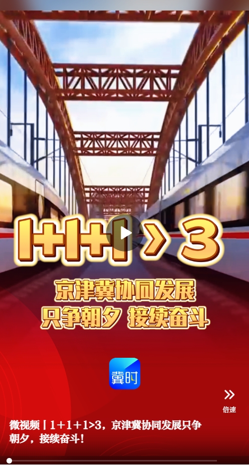 编辑:戴婧霄 来源:河北广播电视台 原标题:微视频丨1+1+1>3,京津冀协同发展只争朝夕,接续奋斗! 点赞 +1 微博 微信 我要评论 发布 相关推荐 冀时评·2025河北经济数据丨65.6%+8.6%!河北民营经济活力迸发 关注 1小时前 特写:河北两会上的“雄安团” 关注 1小时前 【向着“十五五”,奋进!】河北:创新澎湃 向未来 关注 1小时前 河北日报社论丨满怀信心开新局 昂首阔步“十五五” 关注 1小时前 图说2025年经济数据丨784亿斤河北粮为“中国碗”添秤加码 关注 1小时前 冀时评·2025河北经济数据丨11.0%!河北新兴产业为何快速增长? 关注 1小时前 百姓看联播 | “河北智造”的密码是什么 关注 1小时前 热门 一天 三天 一周 1 一场开到村民心坎上的新春“服务大集”——阜城县古城镇刘南星阁村举办惠民活动见闻 2 向“新”发力 提“质”前行——衡水市桃城区以科技创新赋能经济高质量发展 3 衡水市“星星义卖”公益活动点亮“星星孩子”的希望之光 4 酒香迎新春 墨韵送福来——衡水老白干景区新春文化活动温情启幕 5 独家视频丨习近平:中英两国合作一定能一马当先 6 金融镜鉴|人保财险3人被禁业15年,5人被警告并罚款 7 全国首批!衡水市三大产业集群获数据产权登记证书 8 衡水市安平县农产品向全产业链发力 推动农业提质增效 9 长图·2025河北经济数据解读丨增速居全国第2位!2025年河北社会消费品零售总额同比增长5.6% 10 2026河北两会·聚焦丨河北省人大代表认真审议省十四届人大常委会的主要工作报告、两院报告 1 衡水市冀州区打好“组合拳”促进现代农业全产业链提档升级 2 【新闻发布】2025年研学游客超137万人次 衡水研学旅游高质量发展成效显著 3 衡水市委综合改革办驻桃城区后韩家庄村工作队:把贴心服务送到村民心坎上 4 衡水冀州:北岳家庄村 湖畔渔村焕新颜 5 “大美衡水——2025年衡水市书画精品展”开展 6 有意愿接种人群接种覆盖率100% 衡水市7686名14周岁女童免费完成首剂HPV疫苗接种 7 “青耕湖城 画乡甄选”架起产销青春桥 衡水市武强县乡村振兴农副产品展销中心开业 8 捷报频传!武邑县职教中心学子在省技能大赛中揽获17项荣誉,饲料营养与检测团队晋级世校赛 9 约上“搭子” 挥汗“来一场” 衡水市主城区9家百姓健身房满足群众体育便捷化服务需求 10 【新闻发布】2025年 衡水检察机关群众满意度连续8年居全省第一 1 一碗粥一瓣蒜 衡水萌娃“趣”寻腊八味 2 2025年衡水市经济运行稳中向好 3 让每一份希望都稳稳落地——2025年衡水市残疾人事业高质量发展综述 4 衡水市委市直工委组织党员干部集中收看《榜样10》 5 武邑县康泰社区:腊八送温情 暖“新”又“粥”到 6 【“十五五”开局看衡水】乘风逐梦向云端——我市低空经济聚链成群再“高飞” 7 警校携手筑牢安全防线|武邑中学开展防诈骗、防校园霸凌法律宣讲会 8 “桑梓情 心永衡”2026年衡水学子回归计划主题招聘活动启动 9 衡水市冀州区打好“组合拳”促进现代农业全产业链提档升级 10 迎学子归巢,共叙母校温情|武邑宏达学校优秀毕业生返校分享成长感悟 广告 广告 广告 24小时 1 2025年度衡水市政工专业职务任职资格评审结果公示 2 冀时评·2025河北经济数据丨65.6%+8.6%!河北民营经济活力迸发 3 全形态覆盖 雄安打造具身智能高质量数据服务平台 4 特写:河北两会上的“雄安团” 5 两会现场评丨大道至简,实干为要 6 【向着“十五五”,奋进!】河北:创新澎湃 向未来 7 河北日报社论丨满怀信心开新局 昂首阔步“十五五” 8 寒假现近视手术热 青年学子为圆“军警梦”积极矫正视力 9 衡水葛霞:义务清除街头“绊脚钉” 用角磨机打磨城市温情 10 城警联动 衡水专项整治市容秩序突出问题