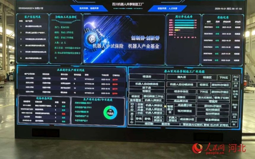 百川机器人共享制造工厂生产情况进度表。人民网记者 朱延生摄