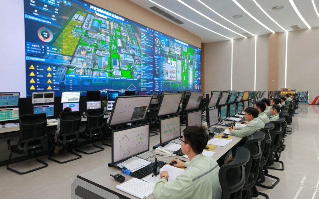 2025年5月23日,在河北建滔能源发展有限公司中央控制室,工作人员在调试生产参数。(资料片)刘继东摄
