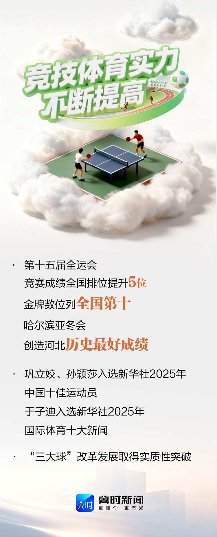 以“向上”之姿,拓“无限可能”。一组海报,浓缩2025河北体育事业成绩单。编辑:王书文 来源:河北广播电视台冀时新闻 原标题:数读2025丨河北体育年度答卷,写着“向上”无限种可能 点赞 +1 微博 微信 我要评论 发布 相关推荐 奋进的河北·数读新变化丨① 主要经济指标好于预期 好于全国!“十四五”收官之年河北交出沉甸甸成绩单 特别关注 1小时前 数读2025丨河北体育年度答卷,写着“向上”无限种可能 关注 5小时前 图说2025年经济数据丨增速全国第二!河北社会消费品零售总额超1.5万亿 关注 22小时前 奋进的河北·数读新变化丨经济运行稳中向好 韧性活力不断增强 关注 22小时前 图说2025年经济数据丨增速全国第二!河北社会消费品零售总额超1.5万亿 关注 1天前 奋进的河北·数读新变化丨经济运行稳中向好 韧性活力不断增强 关注 1天前 热门 一天 三天 一周 1 代表委员回岗位|关虎跃:“流动办公桌”前听民声 2 衡水市景县举办青年联谊会 “低彩礼·零彩礼”引领婚恋新风尚 3 河北广大干部群众认真学习贯彻省两会精神 4 “共享智造”何以成河北两会热词? 5 图说2025年经济数据丨增速全国第二!河北社会消费品零售总额超1.5万亿 6 唐山创新项目报建前期审批服务运行机制 7 冰雪春天|神州雪韵 广纳宾朋 8 【央视快评】推动我国未来产业发展不断取得新突破 9 “十五五”开局看石家庄 | 办公上下楼 产业上下游——探访河北鹿泉经济开发区聚链成群的发展密码 10 “极数”数据大模型最新成果与战略规划在雄安重磅发布 1 桃城区举办“乡村文化大集”把文化年礼送到群众家门口 2 衡水葛霞:义务清除街头“绊脚钉” 用角磨机打磨城市温情 3 衡水市阜城县创新普法模式为高质量发展注入法治动能 4 拳承一脉 “捶韵”相传——探寻三皇炮捶的世代坚守与传承 5 全国首批!衡水市三大产业集群获数据产权登记证书 6 衡水市安平县农产品向全产业链发力 推动农业提质增效 7 以爱为“调料” 烹出“幸福味”武邑四里屯村“千叟宴”暖意浓浓 8 城警联动 衡水专项整治市容秩序突出问题 9 【2026奔跑向未来】鱼菜共生+AI赋能 循环农业启新篇 10 阜城县王集乡为学生送上寒假安全“大礼包” 1 2025年衡水市经济运行稳中向好 2 【“十五五”开局看衡水】乘风逐梦向云端——我市低空经济聚链成群再“高飞” 3 衡水市冀州区打好“组合拳”促进现代农业全产业链提档升级 4 衡水桃城区:智能装备产销两旺 工人加紧生产保订单 5 央媒省媒关注衡水体育文化事业蓬勃发展 6 值班总编说报|寒尽春将至 奋斗向未来 7 织密立体交通网 畅通发展快车道 衡水六大攻坚行动完善现代化综合交通运输体系 8 “大美衡水——2025年衡水市书画精品展”开展 9 总书记开年第一课,干部群众这样学、这样干 10 衡水桃城区:科技赋能循环农业 奏响乡村振兴新乐章 广告 广告 广告 24小时 1 【冰雪春天】习言道|让冰雪运动进入寻常百姓家 2 【央视快评】推动我国未来产业发展不断取得新突破 3 唐山创新项目报建前期审批服务运行机制 4 “十五五”开局看石家庄 | 办公上下楼 产业上下游——探访河北鹿泉经济开发区聚链成群的发展密码 5 “极数”数据大模型最新成果与战略规划在雄安重磅发布 6 代表委员回岗位|关虎跃:“流动办公桌”前听民声 7 冀时评丨雄安空天信息产业:新质动能的“河北样板” 8 数读2025丨河北体育年度答卷,写着“向上”无限种可能 9 长图· 2025年河北GDP增速何以跑进全国前三丨经济运行稳中向好,韧性活力不断增强 10 冰雪春天|神州雪韵 广纳宾朋