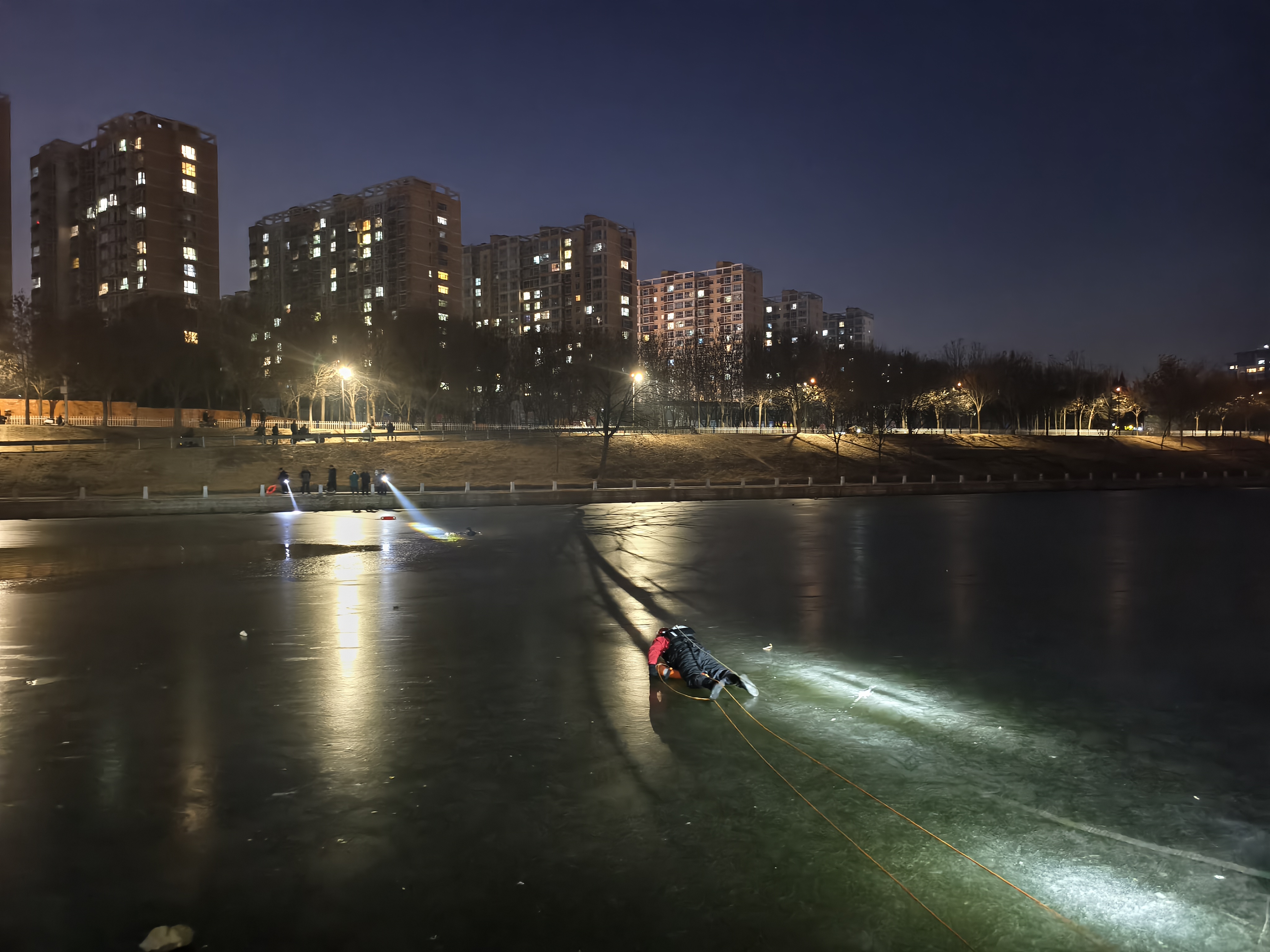 当天18时07分,衡水市消防救援支队接到报警称:衡水市区滏阳河人民桥河段一人掉入冰窟,急需救援。人民东路消防救援站立即出动1辆抢险救援消防车、1辆城市主战车、12名指战员赶赴现场实施救援。