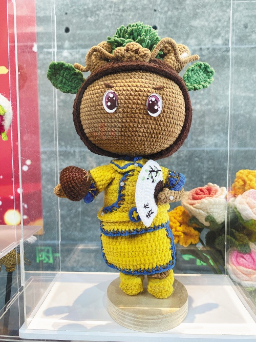 青龙满族自治县传统毛线钩织手工技艺制作而成的原创卡通形象“栗小龙”。