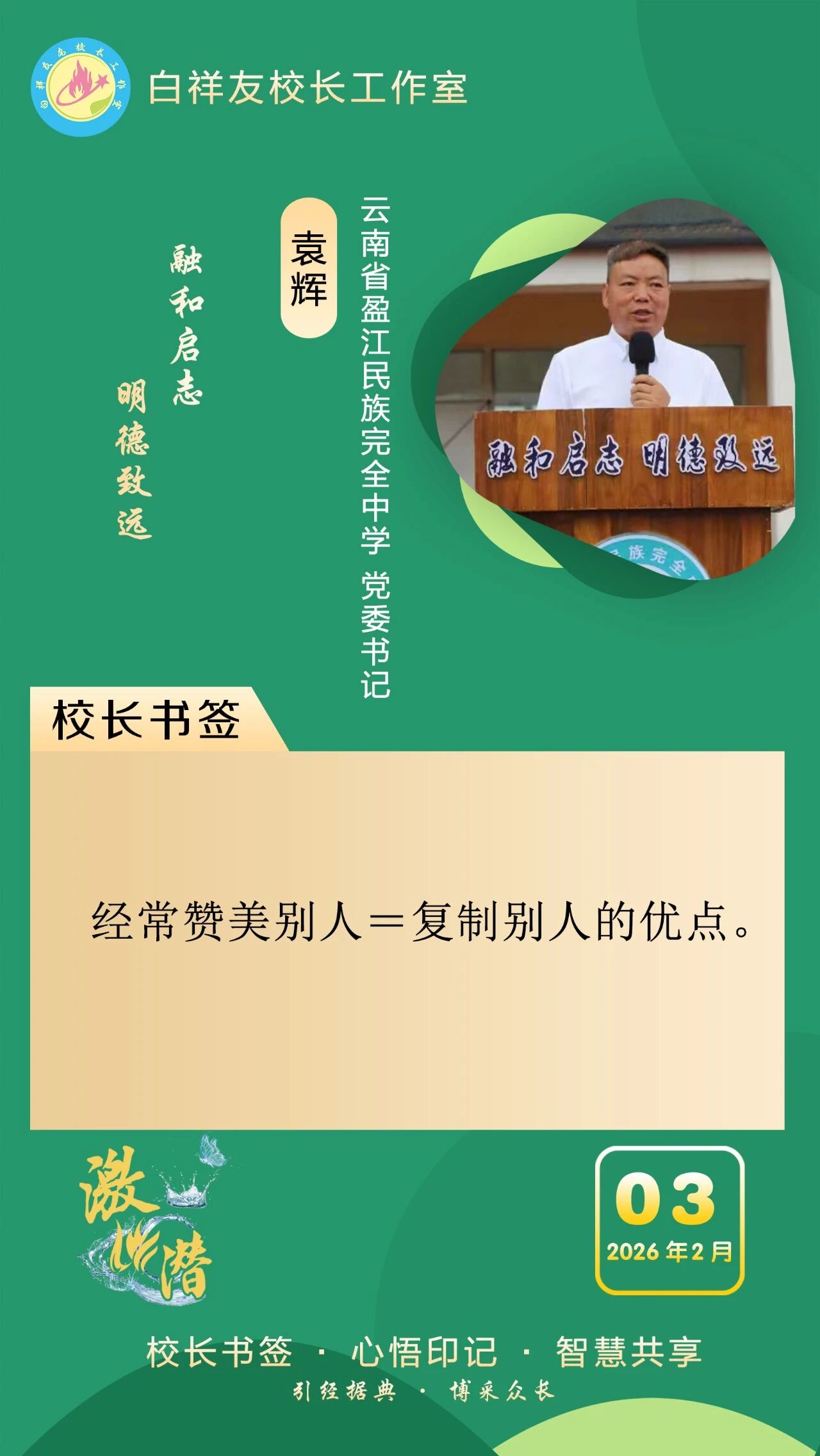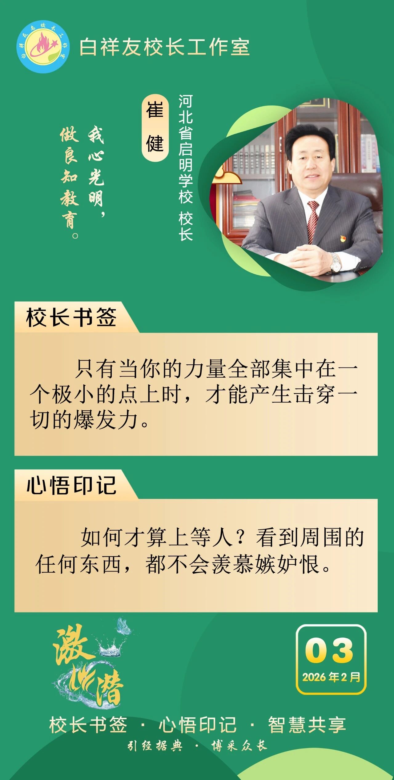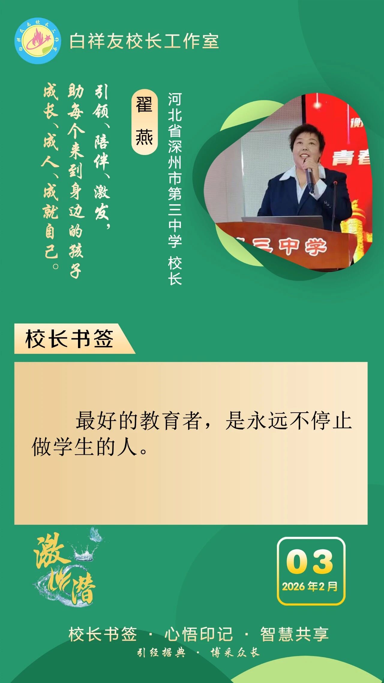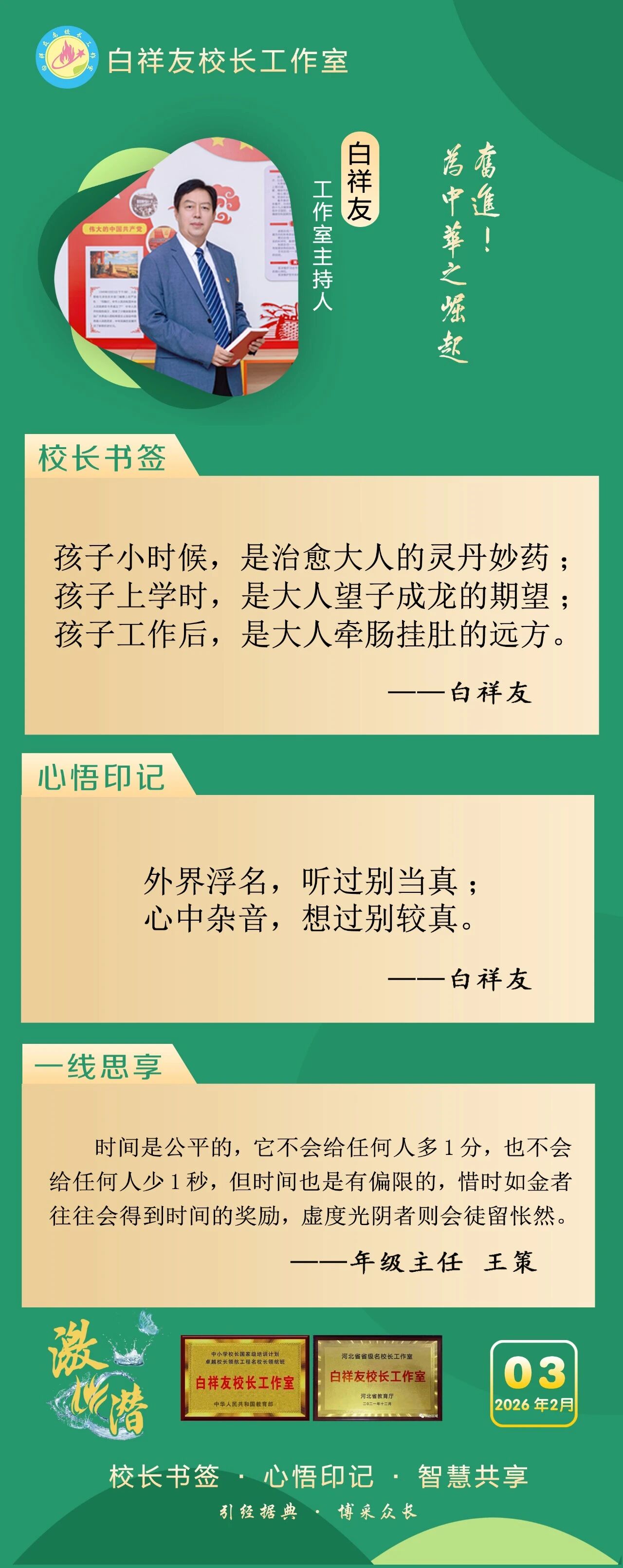 “白祥友校长工作室”成立于2019年4月,是教育部“国培计划”中小学名校长领航工程、河北省首批名校长工作室,目前省内外成员校59所。工作室坚持“资源共享、智慧共融、互助共赢”理念,已成为思想碰撞的交流场,资源共享的品牌站,成果展示的辐射源。 点赞 +1 微博 微信 我要评论 发布 相关推荐 衡水市名校长大讲堂在衡水十三中举办 教育部中小学校长培训办公室于维涛主任作专场报告 教育大观 01-19 白祥友校长工作室成员带队参观衡水十三中 教育大观 2024-05-22 “白祥友校长工作室”成员校石家庄十五中百余教师来衡水十三中参观 教育大观 2024-04-01 热门 一天 三天 一周 1 新春走基层|“西瓜育苗专业村”的新春茶话会 2 河北衡水:花卉市场年味浓,市民购花迎新春 3 衡水消防指战员: 缺席团圆,只为守护万家团圆 4 小张解惑记 5 春节我在岗 | 国网枣强县供电公司朱金魁:坚守供电一线 守护万家灯火 6 衡水冀州区:春节期间冀州老街人气旺 民俗风情引客来 7 “混搭”种养让智慧农业火出圈 8 勇往直前 共同开创更加美好的未来 ——习近平总书记在二〇二六年春节团拜会上的讲话凝聚力量催人奋进 9 央媒省媒关注衡水因地制宜发展新质生产力 10 学习新语丨总书记的马年祝福 1 30余只天鹅飞抵衡水湖 新春添景拉开春季候鸟迁徙大幕 2 【新春走基层】企业有“动”“静” 园区“筑巢”忙 3 【新春走基层】“老产业”装上“新大脑” 4 马年新春里的阜城剪纸:老手艺焕新彩 小乡村启新程 5 安平:花灯会里“演”大戏 NPC互动引客来 6 衡水湖:一湖清水出鲜鱼 渔家灶台年味浓 7 衡水市阜城县蒋坊乡: 用心用情“迎老乡” 牵线搭桥“建家乡” 8 氛围感拉满 衡水市公交车“迎新春”主题车厢已上线 9 【新春走基层】一街烟火 满城年味——春节前夕桃城区庆丰街夜市见闻 10 【新春走基层】 桃城区赵家圈镇贡家圈村:年味飘香话振兴 干群同心向未来 1 衡水市马文化展览精彩亮相 市民沉浸式感受中华马文化 2 【新春走基层】 赶大集 办年货 品年味 衡水市冀州新发地年货大集火热开市 3 举超越之力 书跨越之绩 ——衡水滨湖新区志臻中学2025年办学成果全景回眸 4 点亮衡湖夜·万家中国年 衡水湖新春游园灯会启幕 5 【新春走基层】寻年味 叙乡情 促和谐 衡水市冀州社区新春活动温情满溢 6 【新春走基层】马年启新岁 民俗闹小年——2026年全国春节“村晚”示范展示点暨武强县第36届民俗花会展演 7 【“十五五”开局看衡水】把家“叠”起来 快递到全球 ——河北众鑫合装配式房屋制造探访 8 习近平北京行丨让老年人都有幸福美满的晚年——走进“吾老·新街”养老服务街区 9 【新春走基层】包饺子 写春联 送祝福 桃城区城东社区小年有点儿甜 10 守护“舌尖上的年味” 衡水市开展年夜饭食品安全专项检查 广告 广告 广告 24小时 1 看图学习·热气腾腾的中国年丨“把幸福生活过得更好” 总书记记挂小家冷暖 2 学习·知行丨“典”话新春 习近平这些话暖心又提气 3 窝头香、糖果甜、人心暖!衡水冀州区东方老年公寓:这里就是咱的家 4 非遗正青春 书店过大年 5 新春走基层丨警长老高“平事儿”有招 6 春节我在岗 | 衡水四院2025:时光长河中的奋进华章 7 春节我在岗 | 衡水车务段客运车间张志:坚守担使命 温情润归途 8 骆驼湾的好日子 9 1月河北生态补水量创历年同期最高纪录 10 北方首个国家中药材产品检验检测中心落户河北