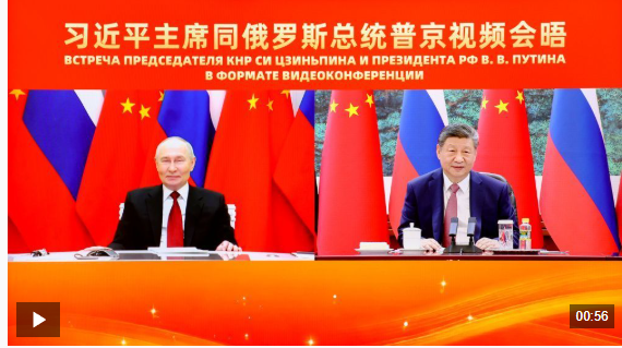 2月4日下午,国家主席习近平在北京人民大会堂同俄罗斯总统普京举行视频会晤。