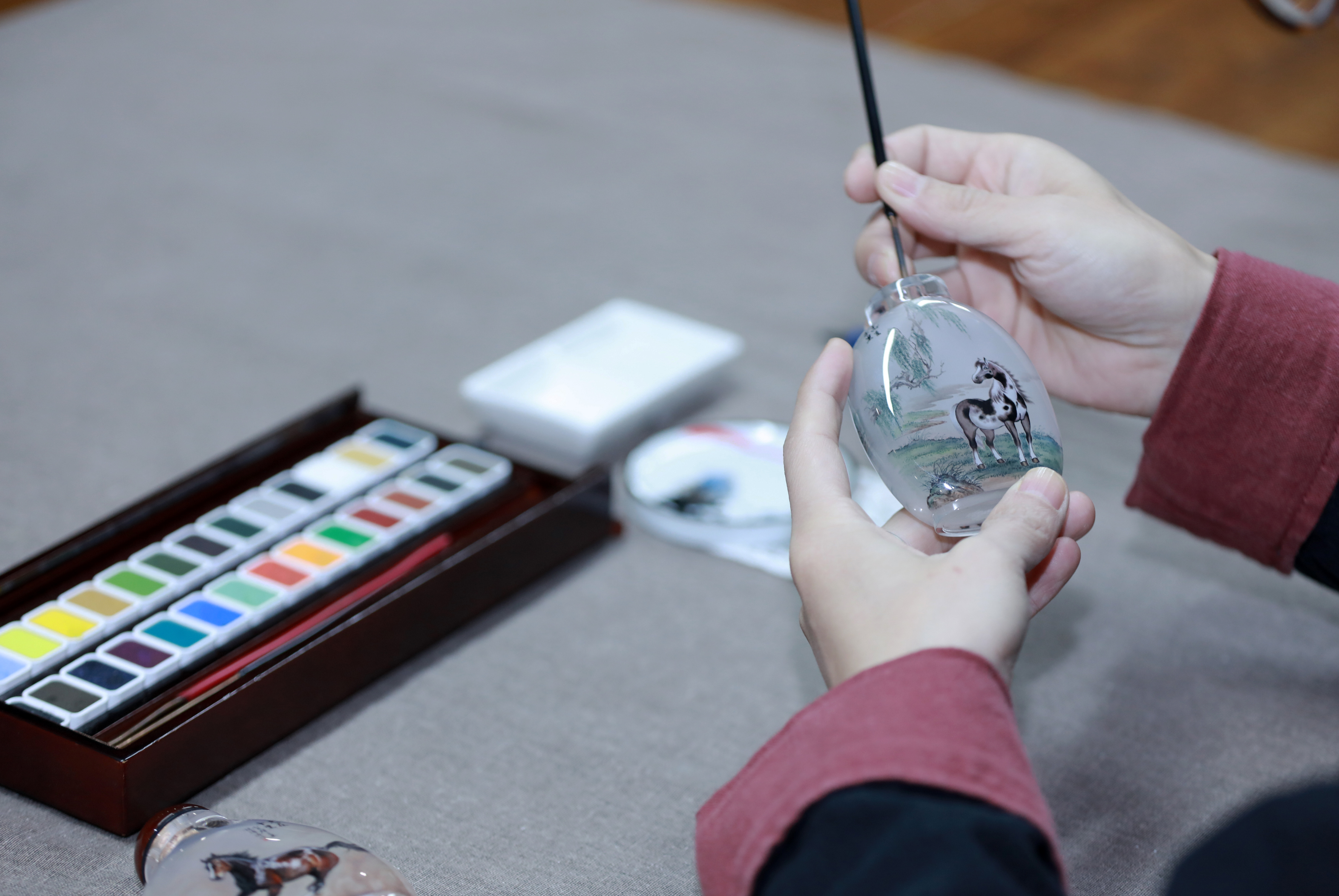 近年来,衡水市推动鼻烟壶与传统节日深度融合,既传承了传统文化,又为新春增添了浓厚的文化氛围。一幅幅精美的内画作品,不仅承载着对新年的美好祝愿,更彰显了衡水非遗文化的独特魅力。马年的喜庆与鼻烟壶的艺术之美相得益彰,共同绘就了一幅热闹祥和的新春画卷。