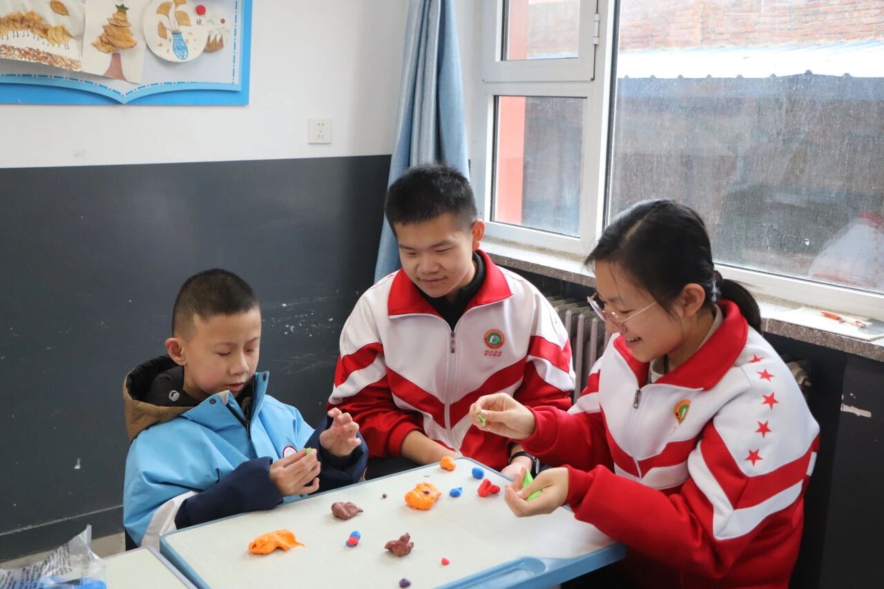 我和一个男孩一起捏黏土。我轻声和他说话,他时而回应,时而哼着歌,手中慢慢捏出饺子的形状。尽管交流简短,但我记住了他喜欢红色、爱唱歌、也爱堆雪人。分别时,他紧紧抱着我的本子不愿松开——那一刻,沉默的动作胜过千言万语。