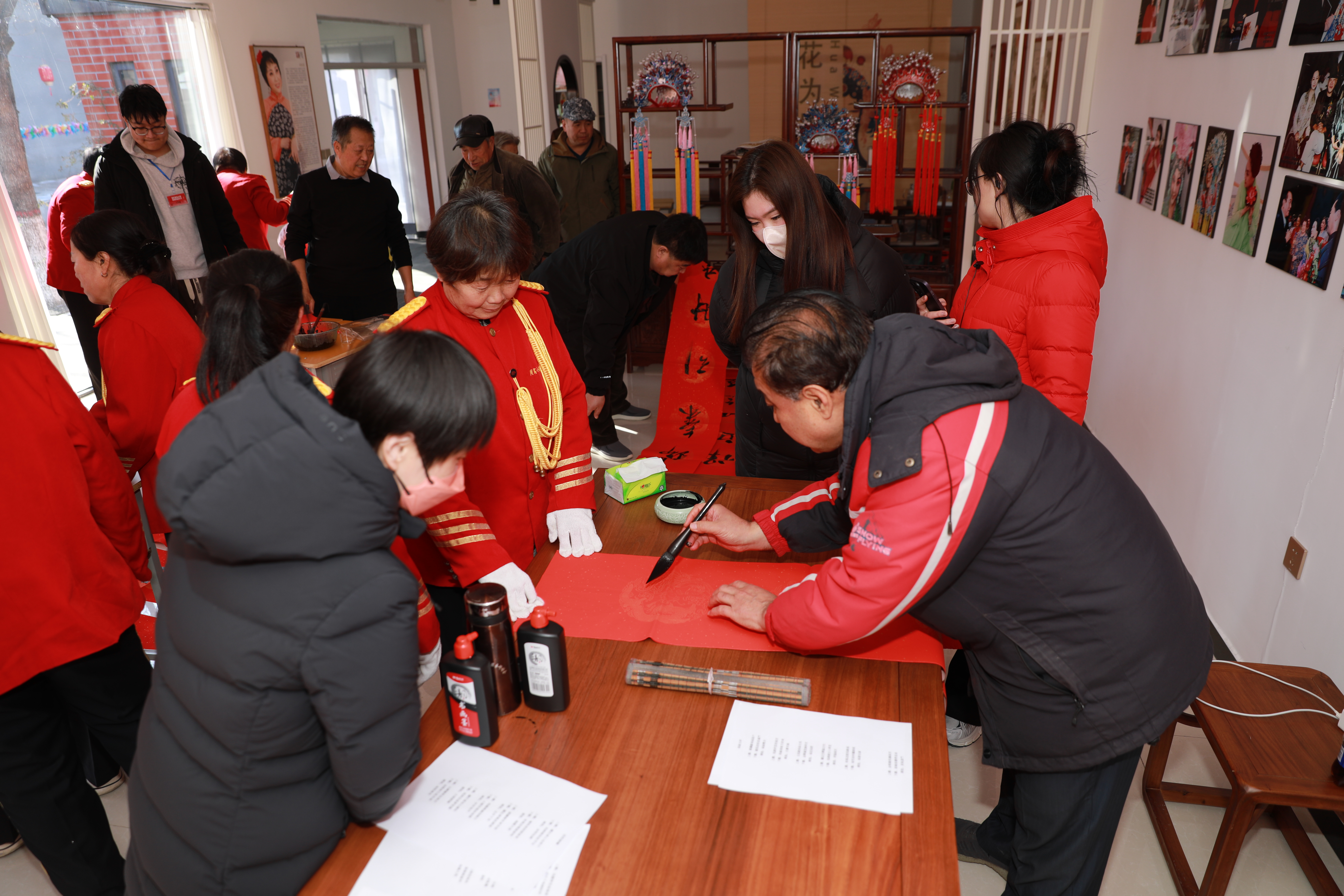 据悉,此次活动由武强县文联、县书法家协会主办,周窝镇承办,是文联系统“强基工程”新春文化惠民系列行动之一。当天,来自武强县书法家协会的十余位书法爱好者齐聚一堂,挥毫泼墨。一幅幅寓意吉祥的春联、一个个饱含神韵的“福”字跃然纸上。“天增岁月人增寿,春满乾坤福满门”“音乐小镇迎贵客,年画之乡纳吉祥”……这些既体现传统年味又巧妙融入小镇特色的春联作品,不仅承载着对新年的美好祈愿,也展现了周窝深厚的文化底蕴。