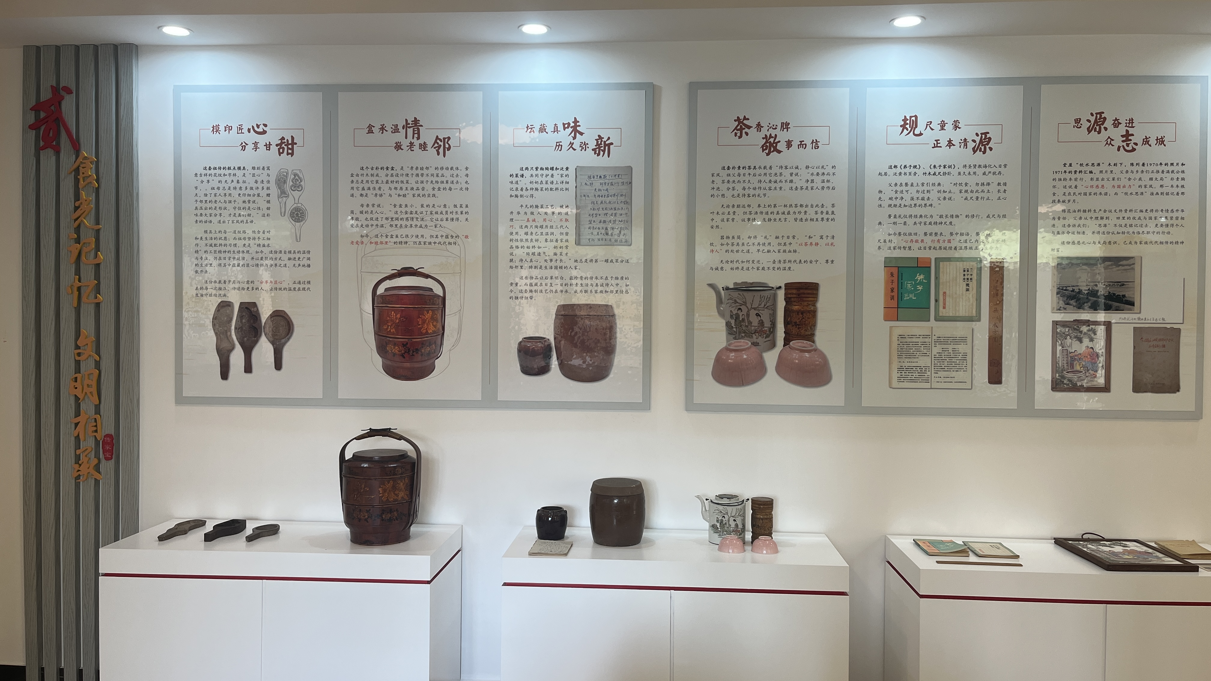 展馆精心设置了“一信一物·家国情怀”“食光记忆·文明相承”等七大主题板块,将“家文化”与家国情怀融入实物:抗战手稿见证地下党员的无畏,援非照片传递国际主义精神,老存折记录持家哲学,糕点模具承载匠心家风。每一件展品,都让勤俭、诚信、忠孝、仁爱等美德变得具体可感。