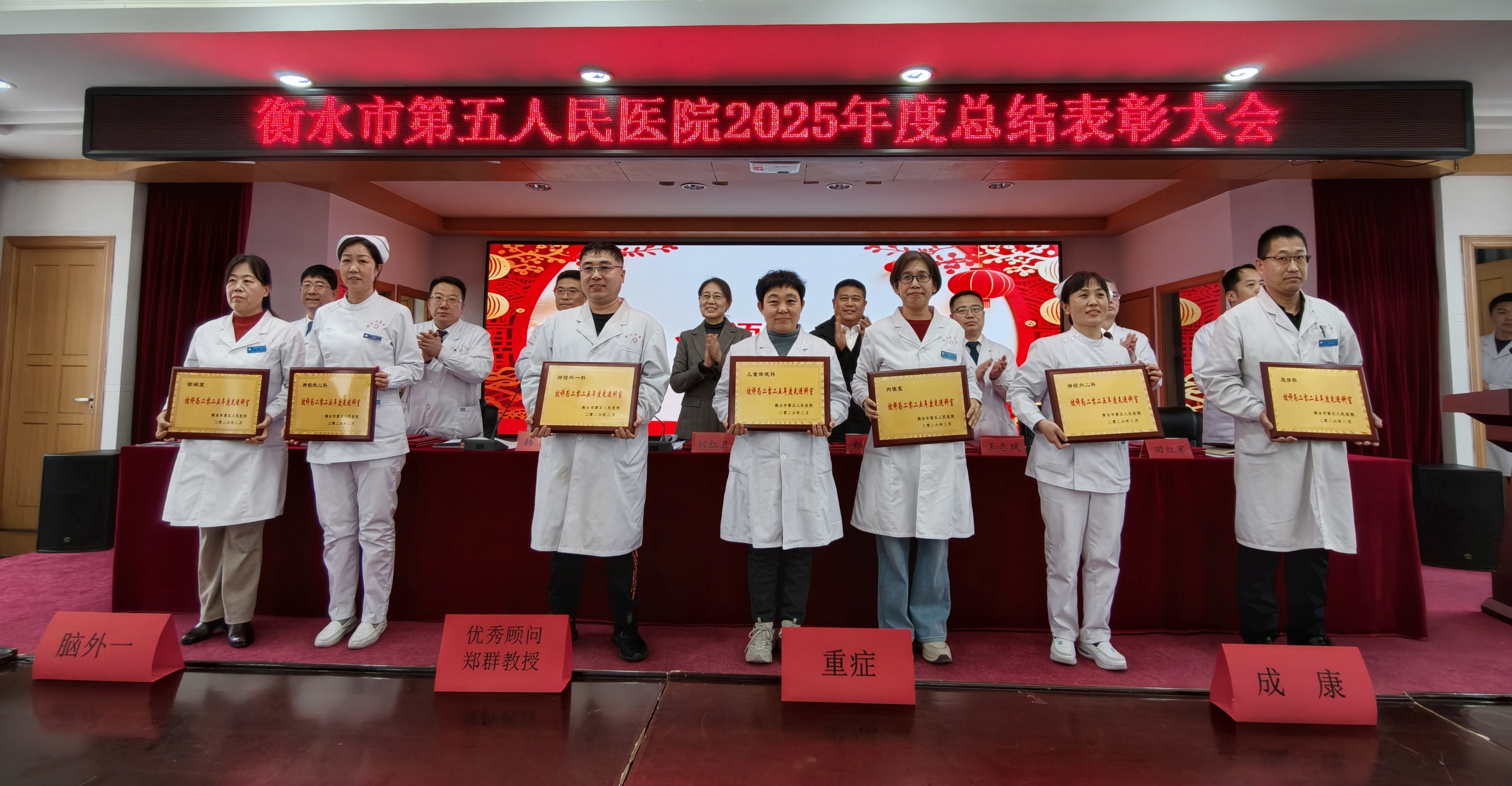 现场对先进科室、先进个人、优秀中层、 十佳医生、十佳护士优秀顾问进行表彰,并依次上台领奖。随后,衡水市第五人民医院党委书记韩非代表医院领导班子作2025年度工作报告,用鲜活数据展现2025年惠民实绩:全年门急诊服务28.5万人次,出院1.67万人次,急救站最快出车反应时间仅1分6秒,院前危重患者处置率100%,为市民生命健康筑牢“急救防线”。