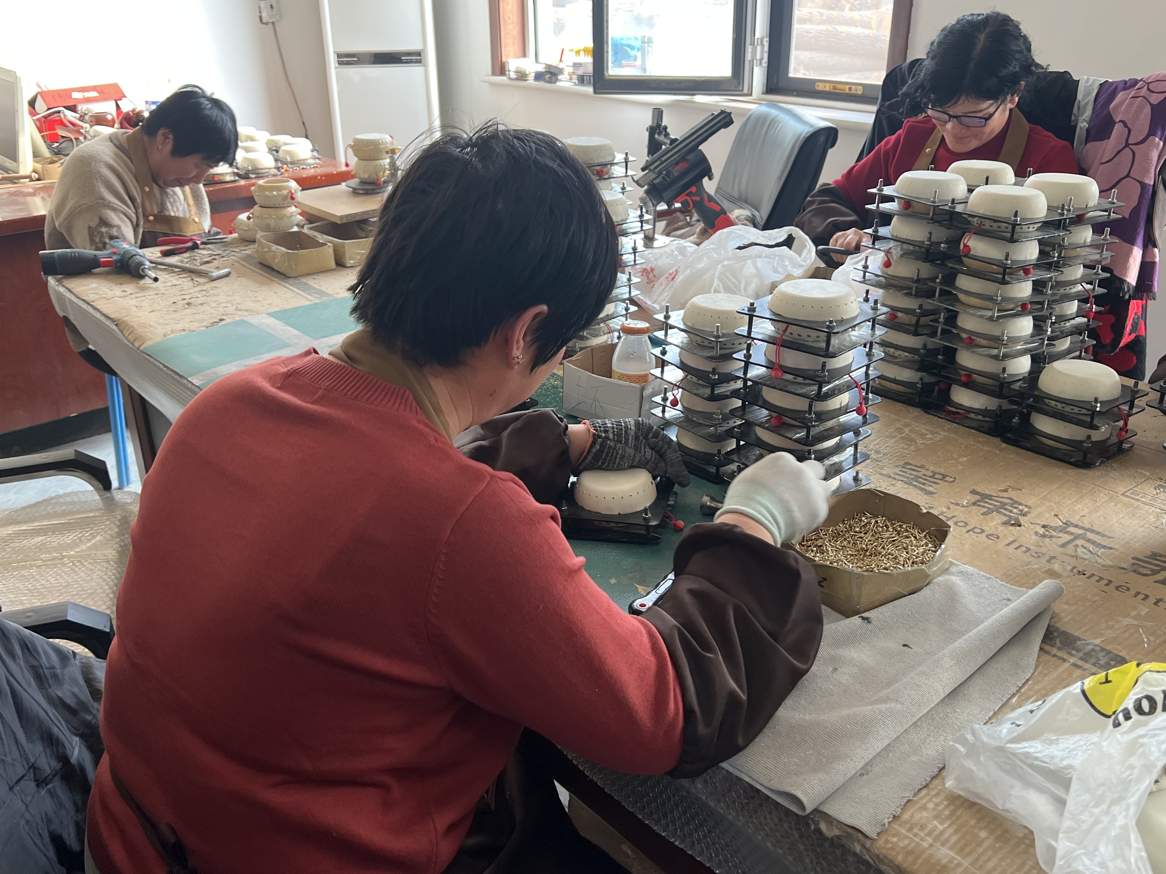 组腔车间内,几位师傅一丝不苟地打磨修整着鼓口、腰身,误差掌控在毫米之内。
