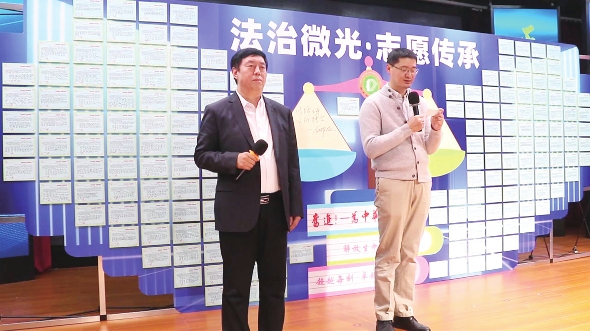 首届“法治微光”志愿活动上,白祥友与罗翔带领学生集体宣誓。