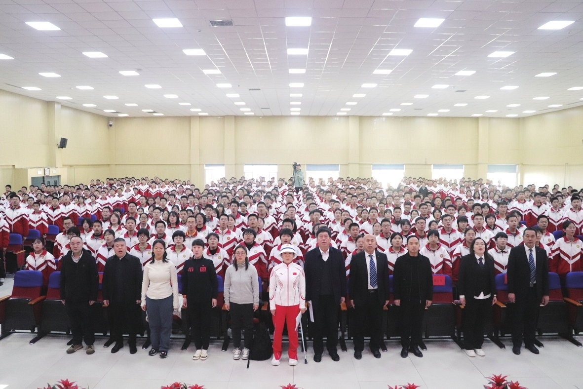 残奥会冠军高芳霞与全体师生参加活动。