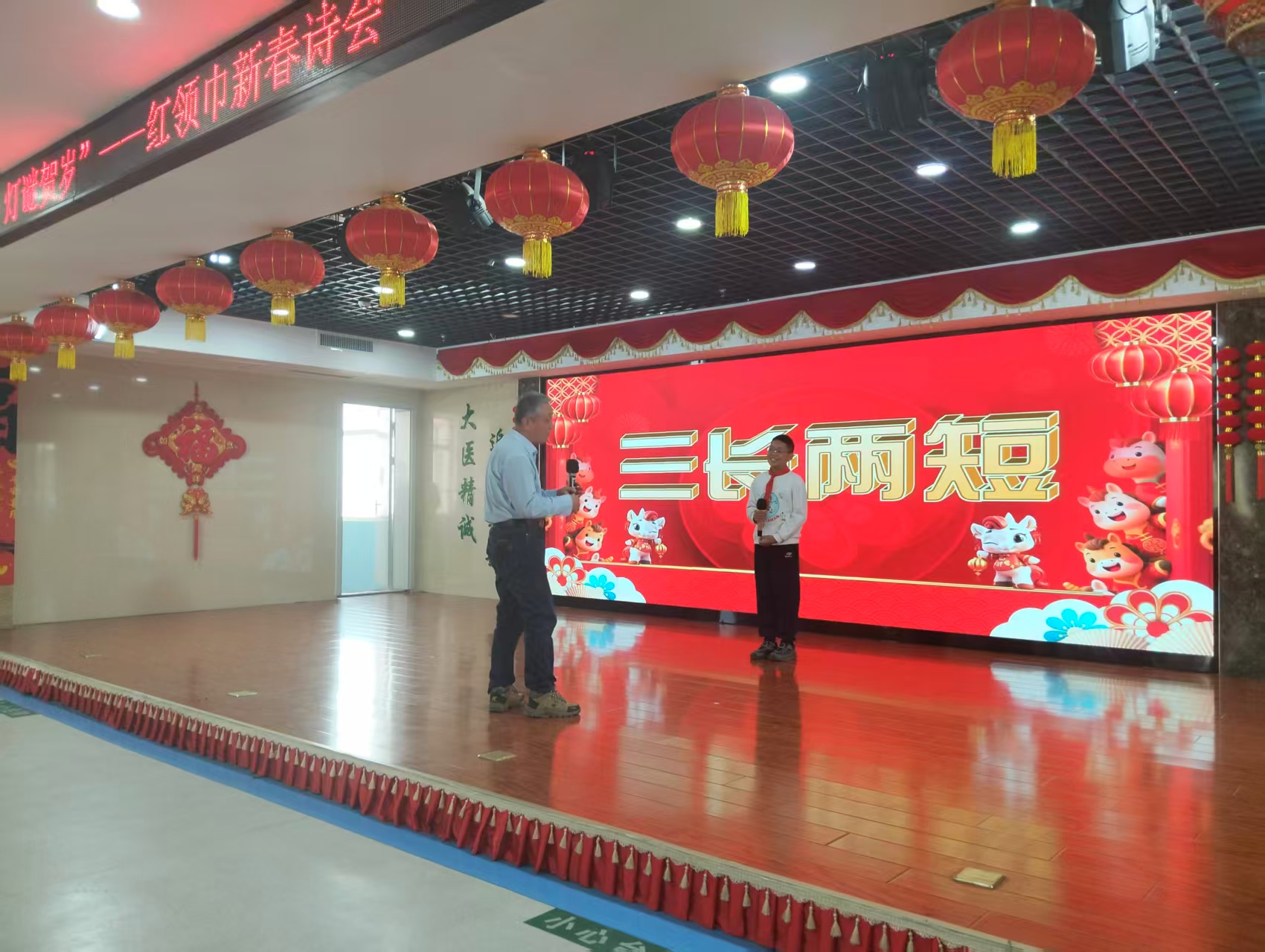 诗歌朗诵、舞蹈、葫芦丝独奏、英文歌曲独唱、说唱、书法……活动上半场,大家纷纷上台秀出自己的绝活儿,和小伙伴们共享新春的喜悦,展现青少年积极向上的精神风貌。每一次真诚的演绎,都赢得了热烈的掌声。轻松肆意又正能量满满的《你,好孩子》说唱表演,以其独特的节奏和积极的歌词,迅速点燃了现场气氛,赢得了阵阵喝彩。舞台一侧,始终静心凝神,将祝福落于笔墨、书写在春联里的少女引人注目。