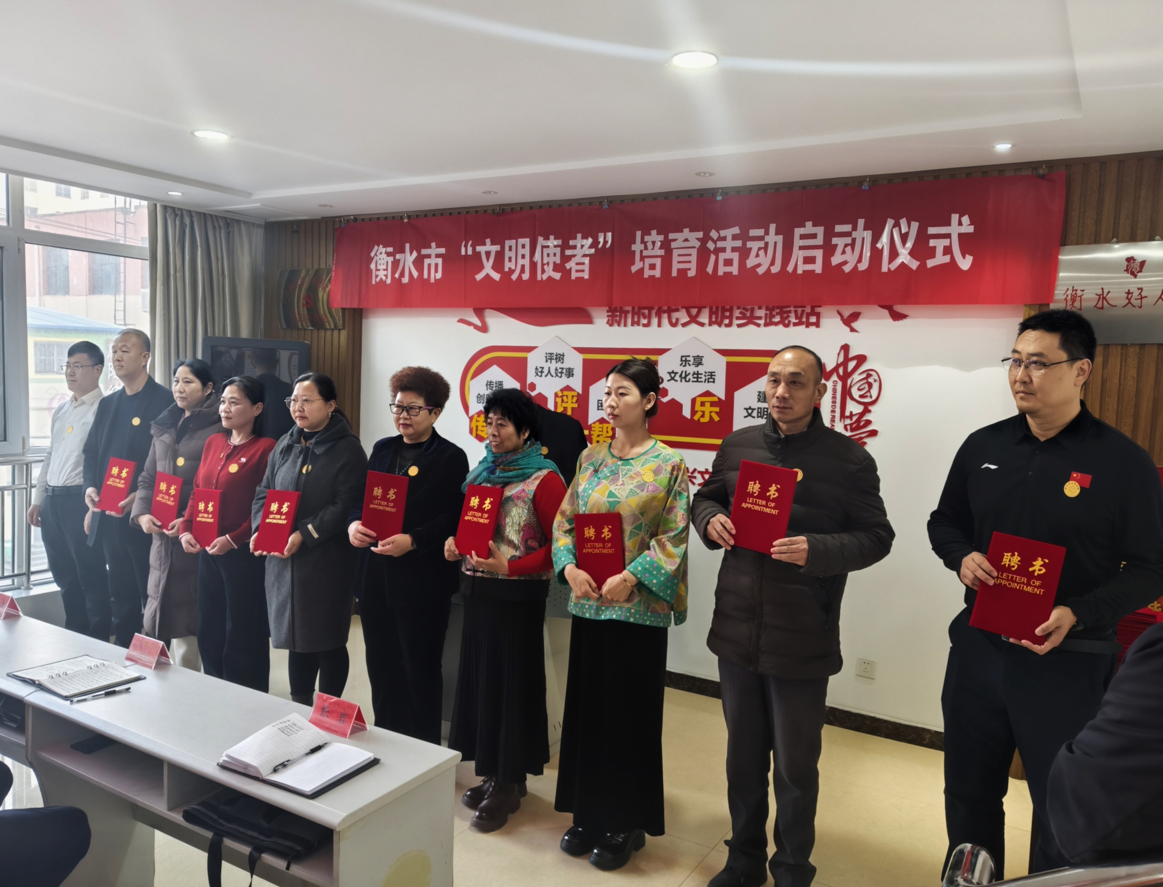 2月12日上午,衡水市“文明使者”培育活动启动仪式在衡水好人馆举行。32名来自群众工作一线的优秀志愿者和热心市民被聘为首批“文明使者”。
