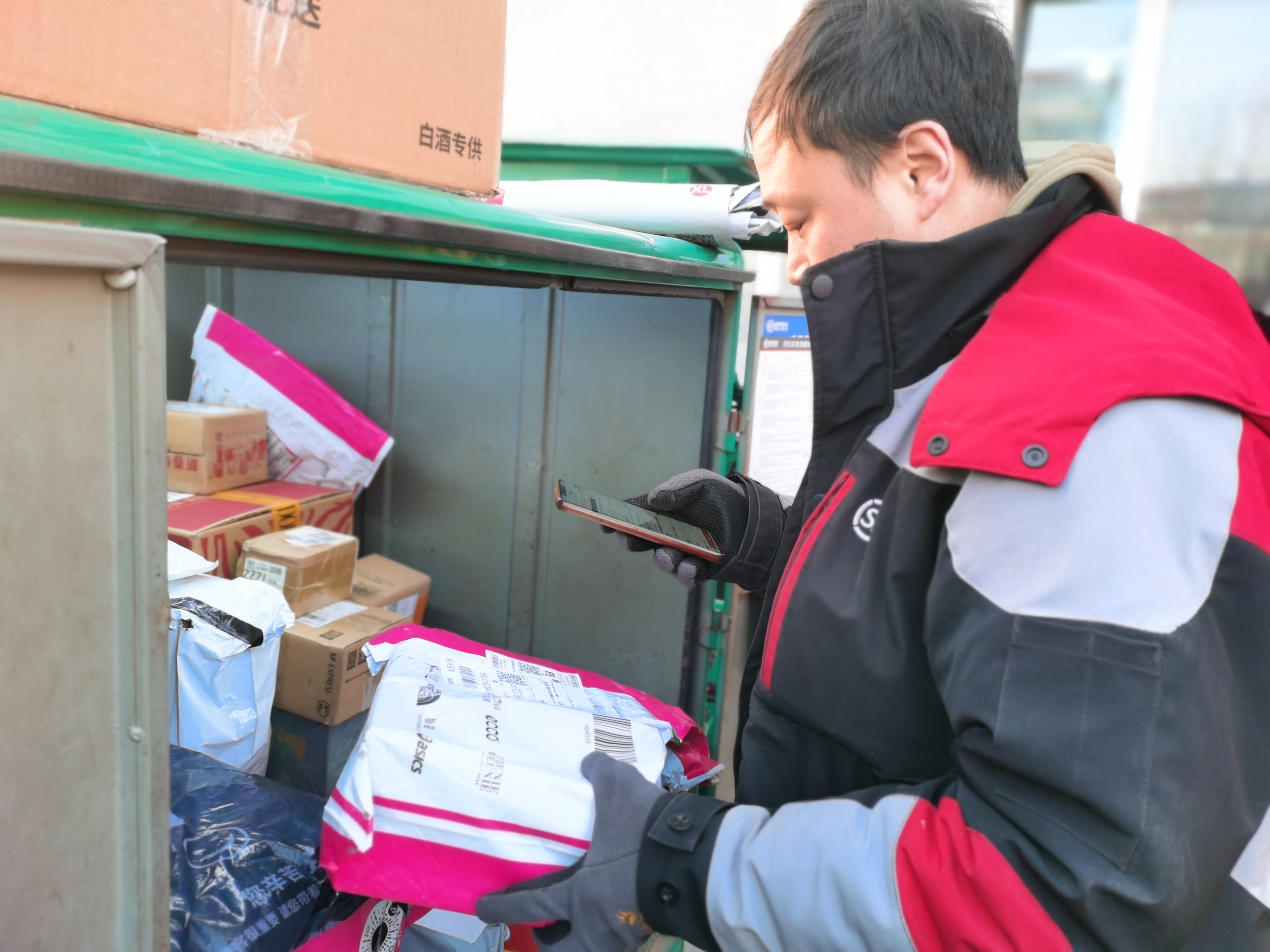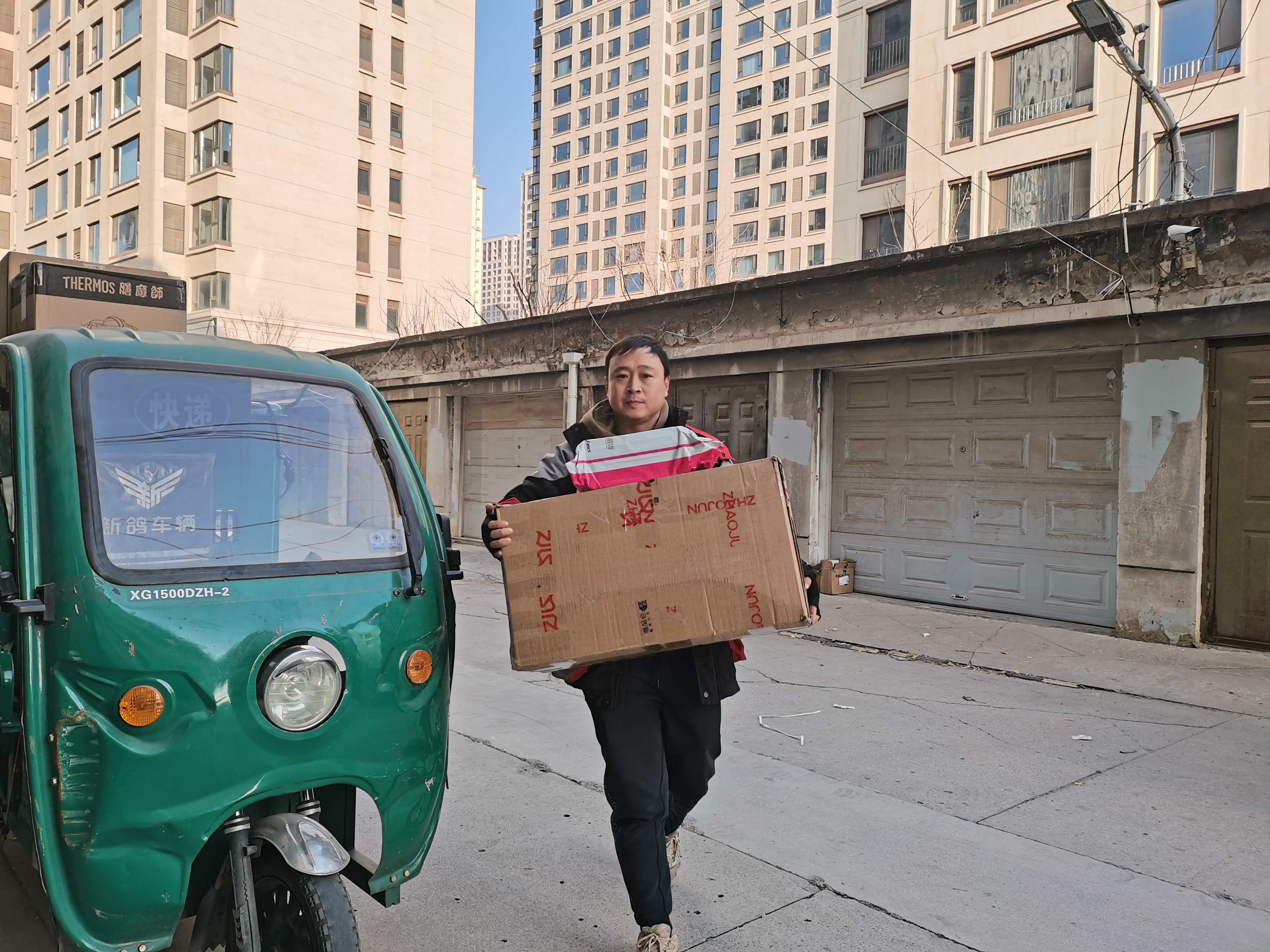 随后抵达的居民小区,三轮车无法进入。26件包裹分散在4栋楼6个单元,代海明拉过公司配备的滑轮配送箱,将包裹装好后挨栋挨单元派送。半个多小时里,他不仅顺利送完包裹,还顺手收了几个居民要寄的年货,脚步始终没停。