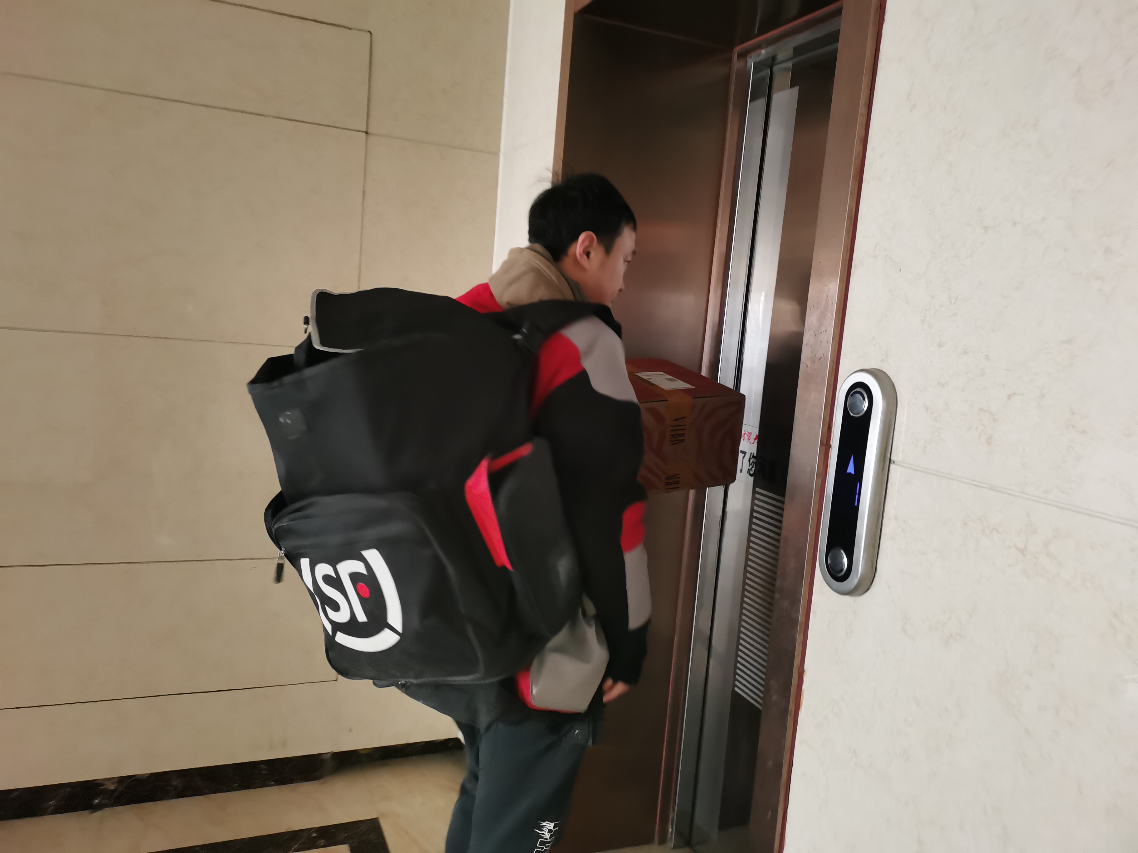 行至一处写字楼,12件包裹要分主副楼、6部电梯配送。代海明背着包裹穿梭其间,熟门熟路。记者跟在身后一路小跑,没多久便晕头转向。他笑着说:“刚开始都这样,跑多了,脑子里就有张‘活地图’。”片区里每栋楼的位置、每位老客户的收货习惯,他都了如指掌,这也是他规划最优路线、实现高效送件的秘诀。