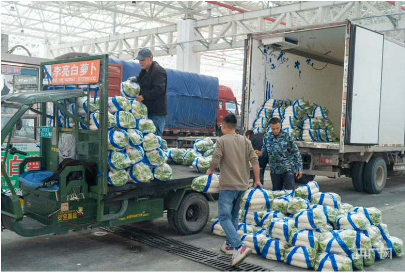 走进档口保鲜库,冷气混着蔬菜的香气扑面而来。刘玉亮当下敲定订单:“2吨货,务必保证新鲜啊。”档口商户杨顺春也是底气十足:“这放心,这批菜中午就能装完,到目的地保证还是现在看到的新鲜状态。”