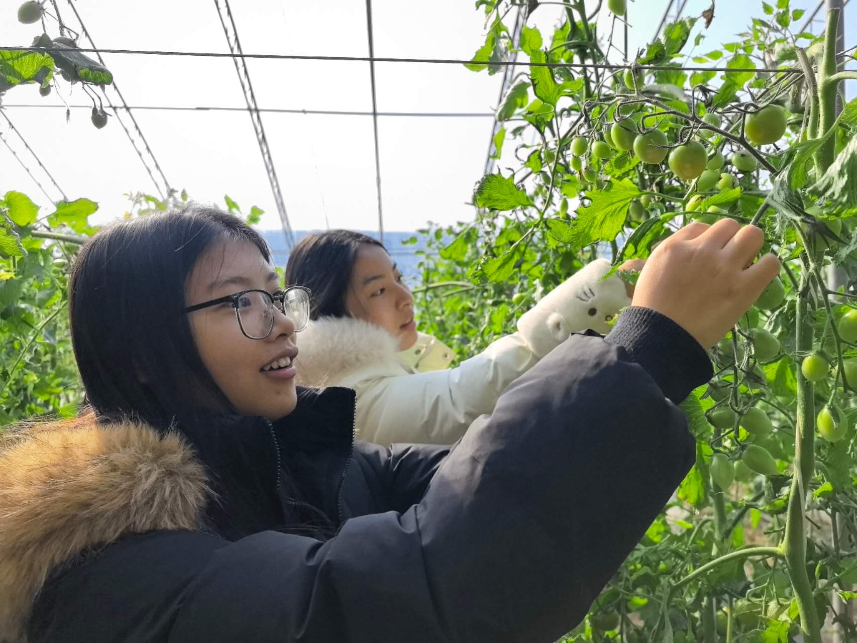 基地负责人介绍,这里总投资1.5亿元,配备高效节水的自动水肥一体化系统和数字化运营管理系统,全部建成后将是华北最大的蓝莓生产基地。学生们围着技术人员问个不停:“水肥一体化怎么控制?”“数字运营系统能看到什么?”“整个大棚的收益有多少?”这些问题背后,是他们对未知的好奇,更是对家乡产业发展隐隐的期许。