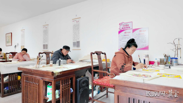 “本来是陪姑娘来学画画,谁知道勾起了我年轻时的梦,阴差阳错我跟着学了下来。”刘桂香老人跟着温潜鳞学了一年,就出师了,现在成了工坊的主力。