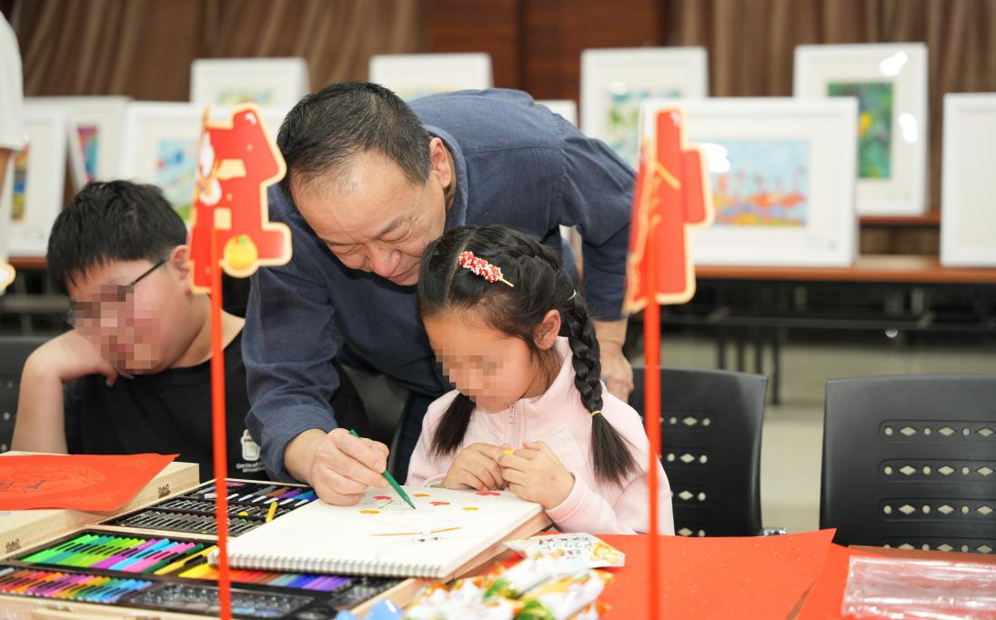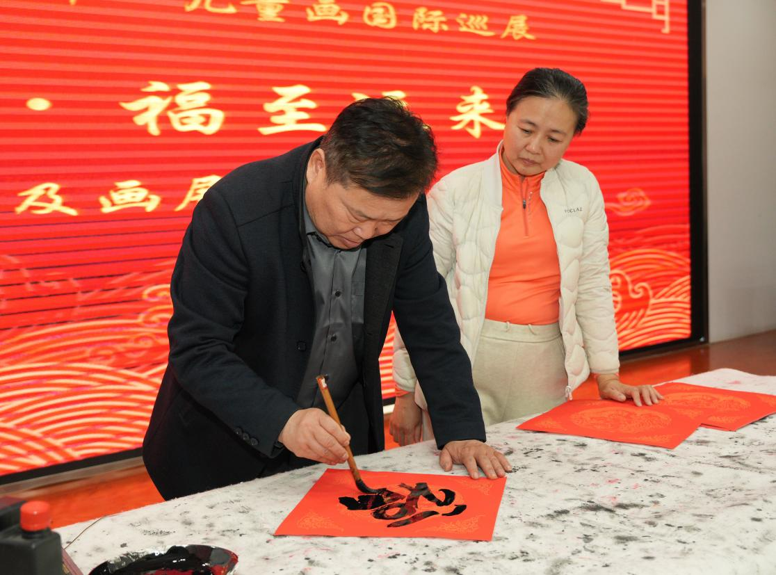 此外,画展组委会主席、画家孔繁纲亲自辅导孩子们现场即兴创作;北京老舍文艺基金会理事长王海域挥毫泼墨,书写寓意吉祥的福字,送到孩子们手中。大红的福字承载着浓浓的年味与深切关怀,让孩子们在笔墨书香中感受爱心与暖意。