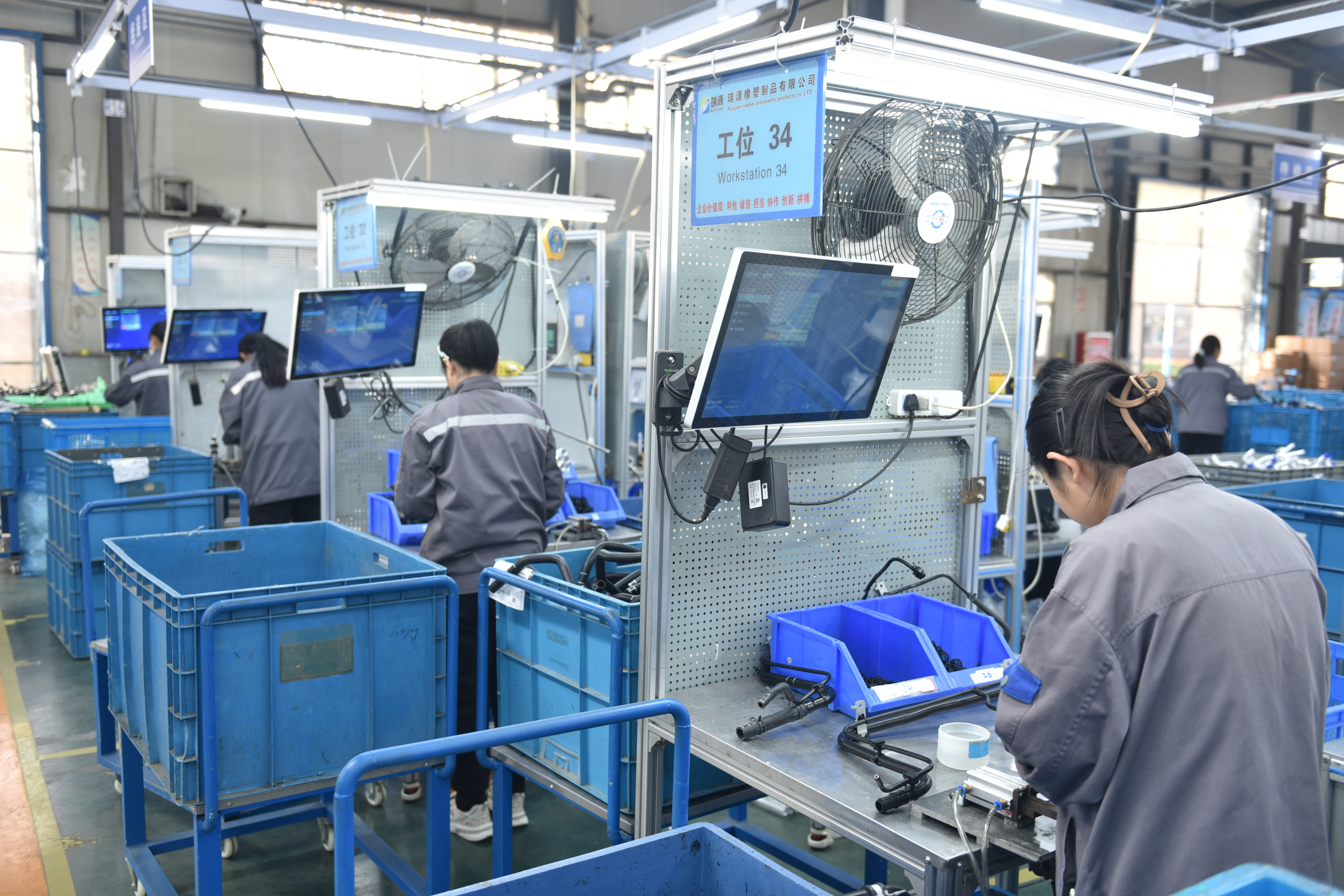 在瑞源公司的组装车间,订单自动转化为生产指令,在大屏上实时调度。王开指着一条快速运转的流水线说道:“在引入智能生产系统后,单件总成生产组装效率提升了25%,产品研发响应速度提升了30%,大幅增强了企业的市场竞争力。”