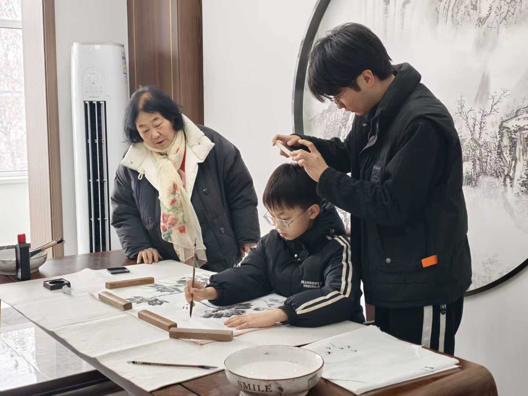 “老爸这笔锋犀利着呢,明年过年啊,我一定早点儿回来,跟着你们一起来社区参加活动!”