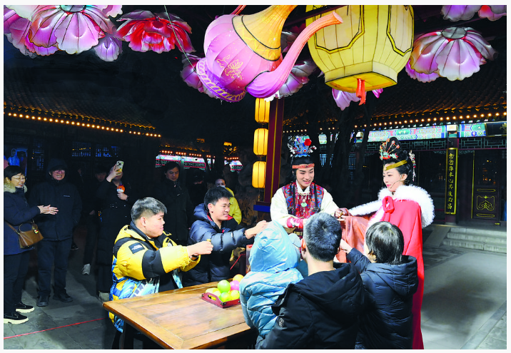 在河北省石家庄市正定古城荣国府景区,游客沉浸式体验“一梦入红楼”演出活动。首席记者 张 震 摄