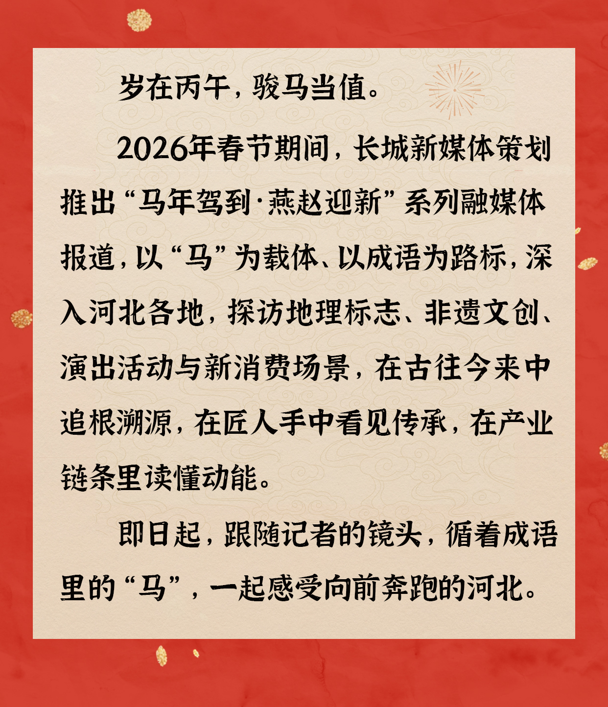 马年驾到,一抹红把燕赵迎新的喜气照进城乡。