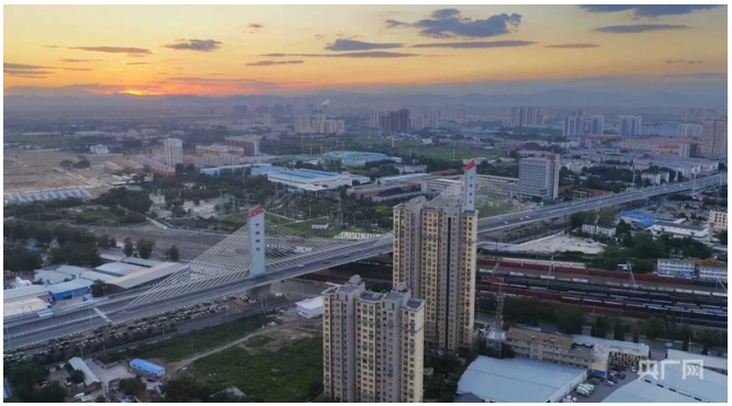 保定乐凯大街高架桥横跨铁路线,与城市建筑相映成景(央广网发 保定市交通局供图)