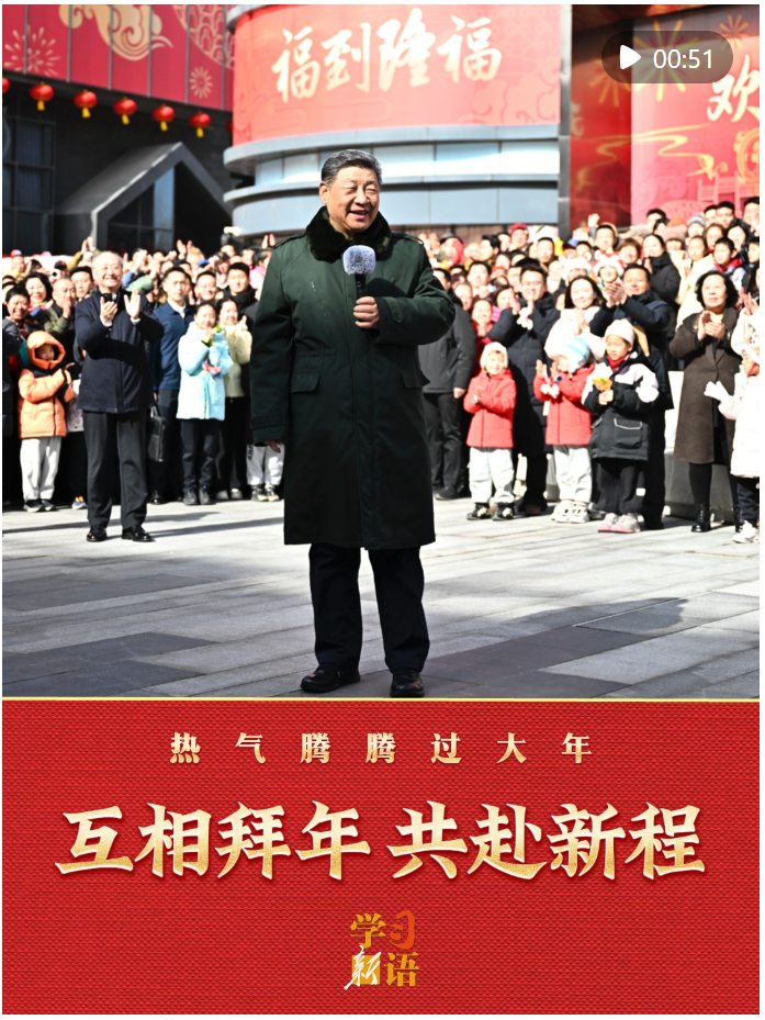 2月17日,正月初一。一元复始,万象更新。神州大地张灯结彩,亲朋好友齐聚一堂,“家”的团圆连着“国”的安泰。在这团圆喜庆的日子,让我们一起回顾习近平总书记与人民互致新春祝福的时刻,声声“拜年”,暖彻心扉。